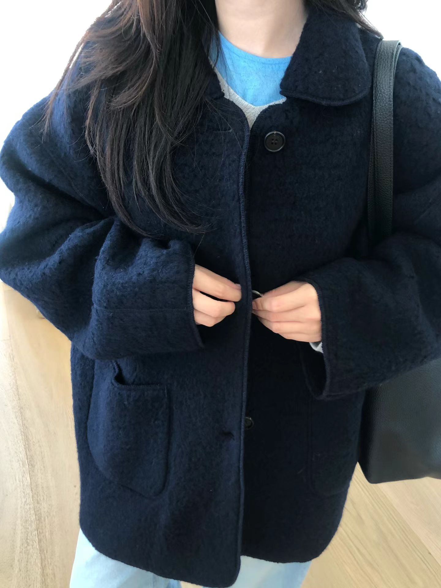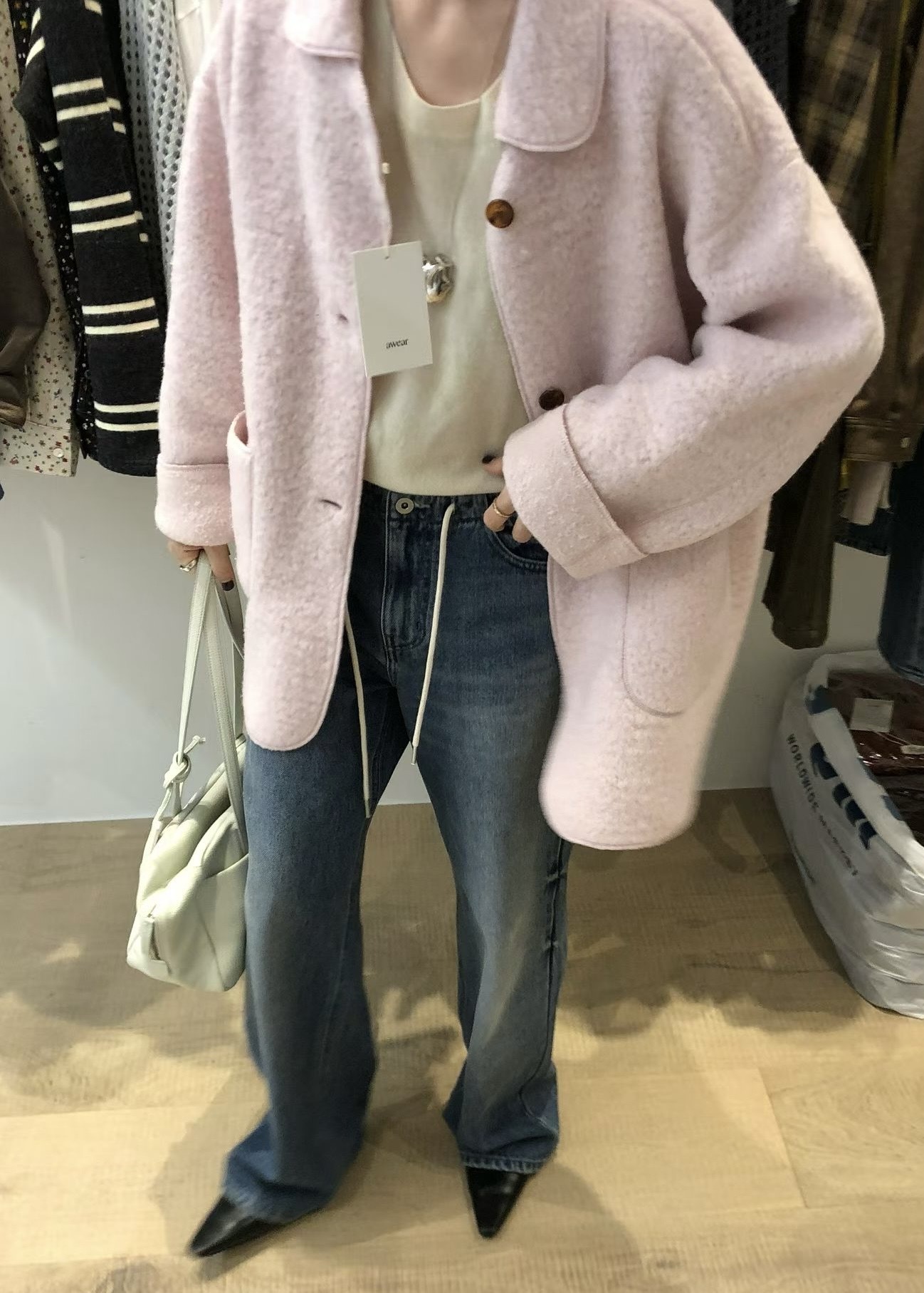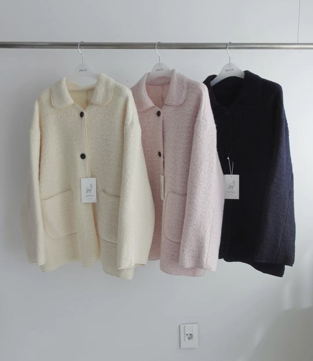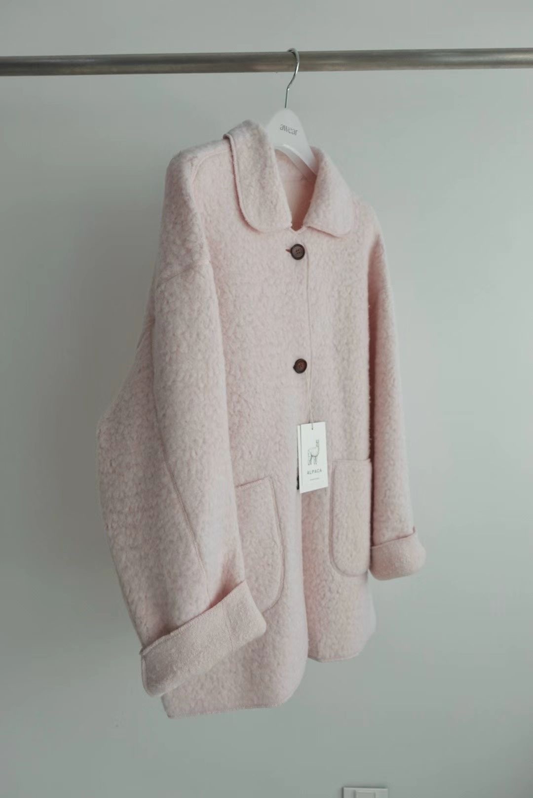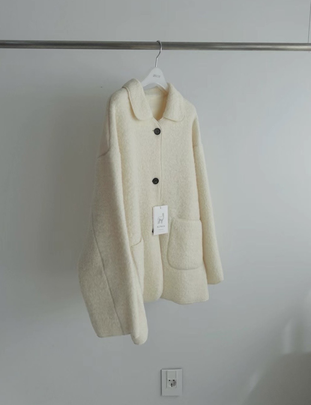 羊駝羊毛輕薄柔軟翻領開扣中長版大衣