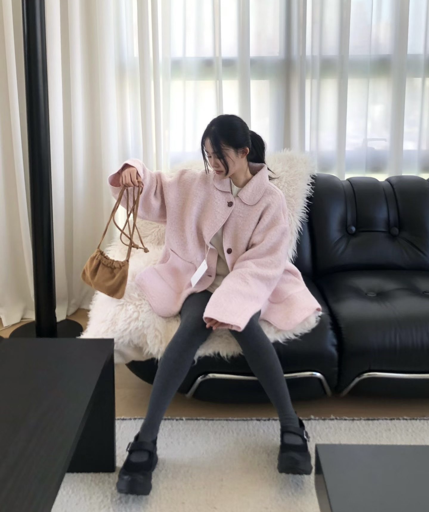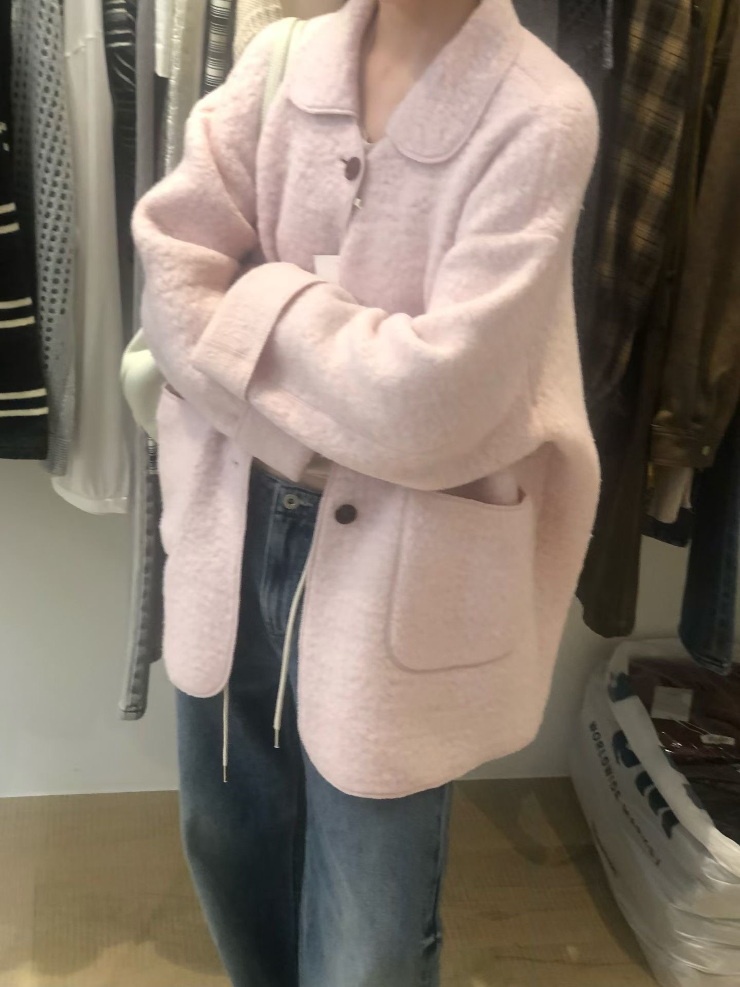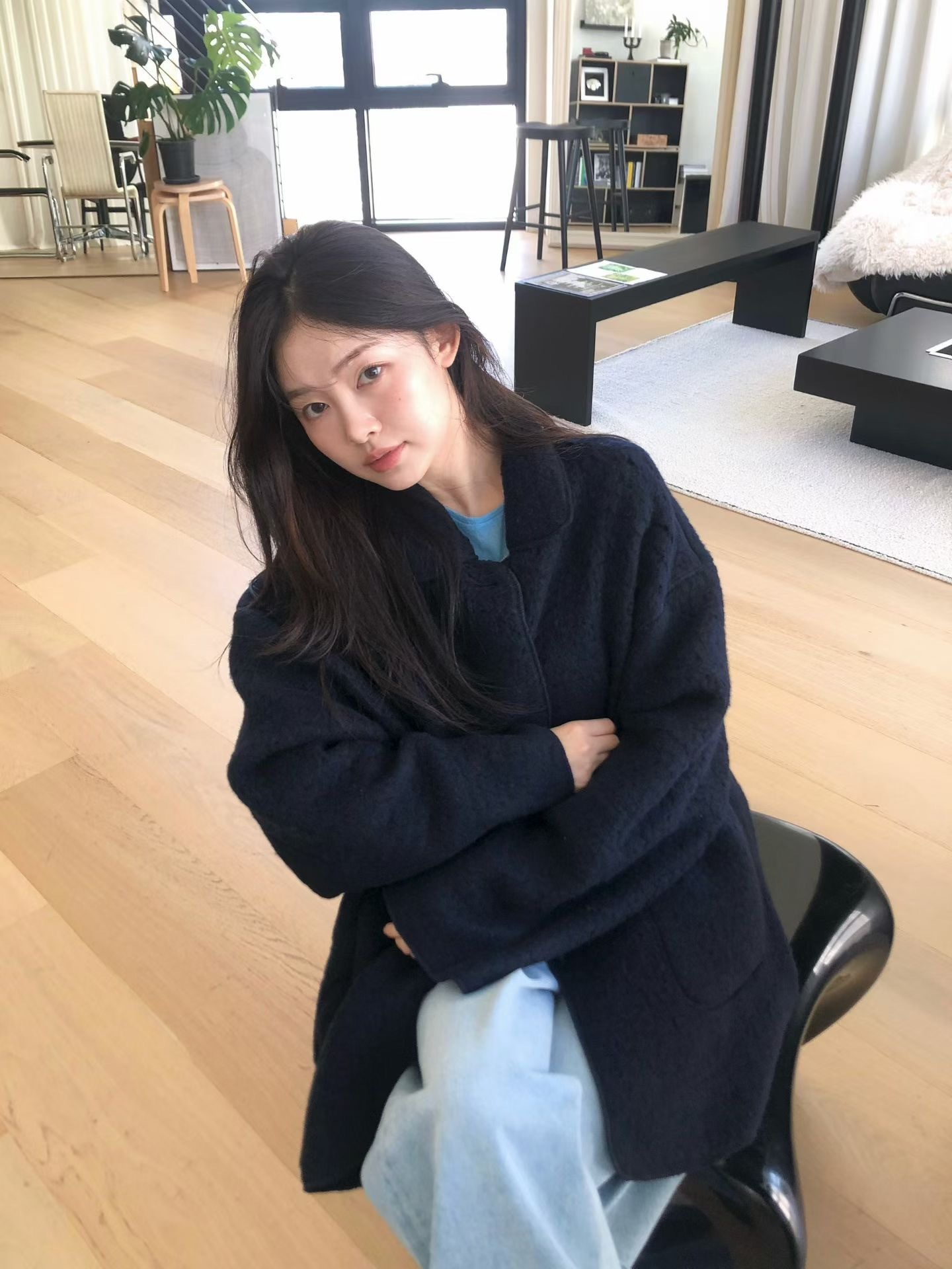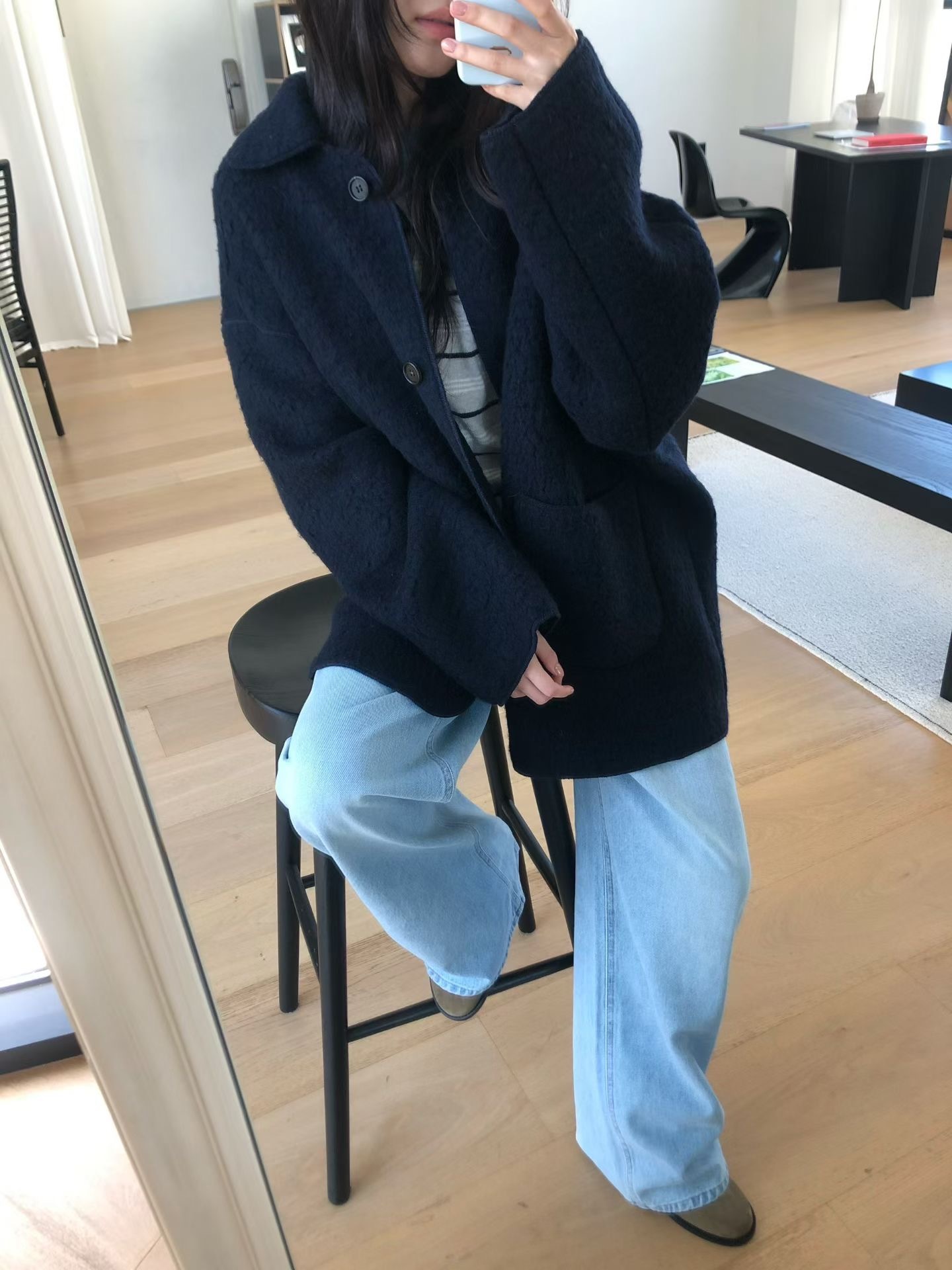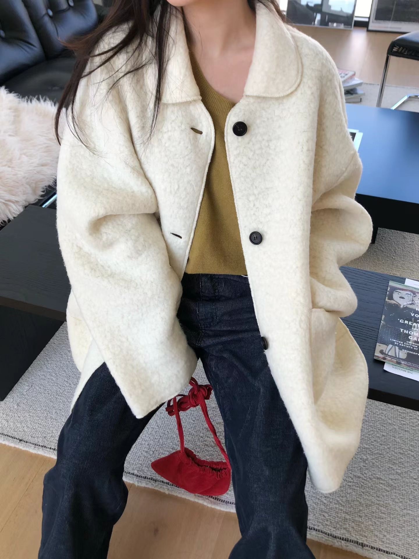 羊駝羊毛輕薄柔軟翻領開扣中長版大衣