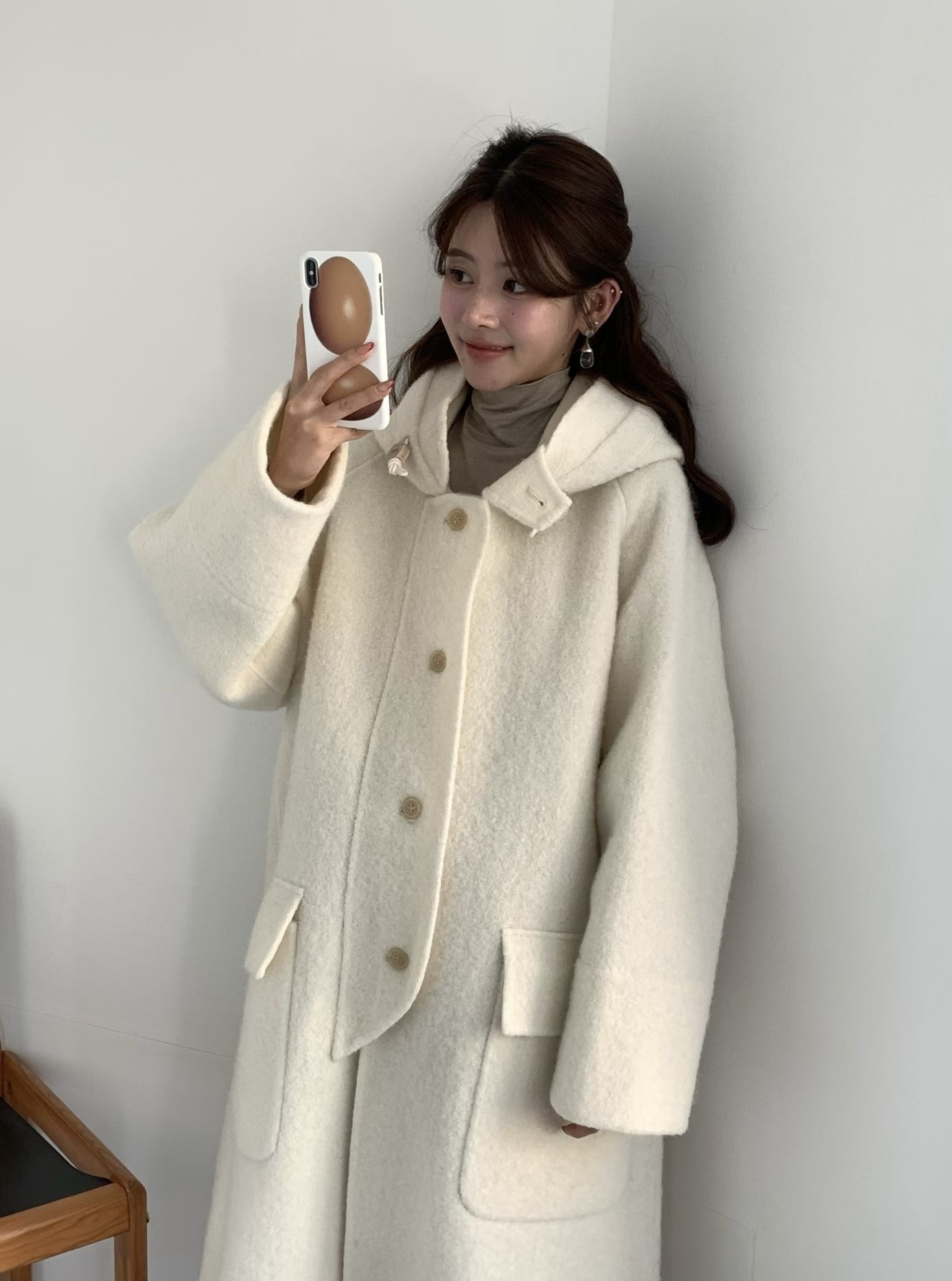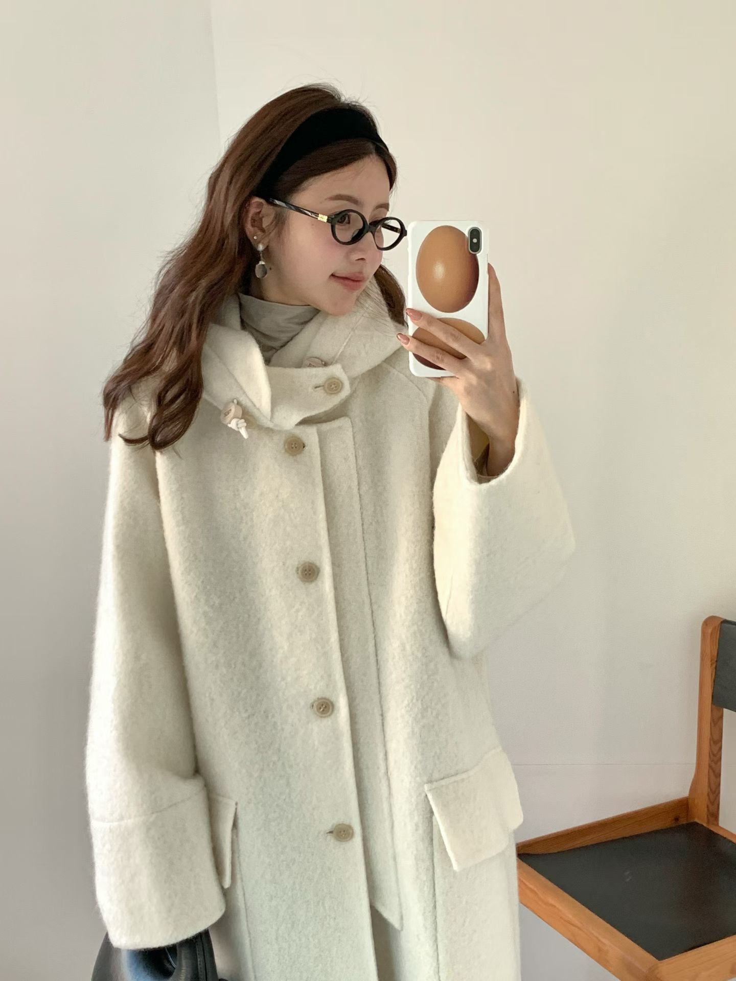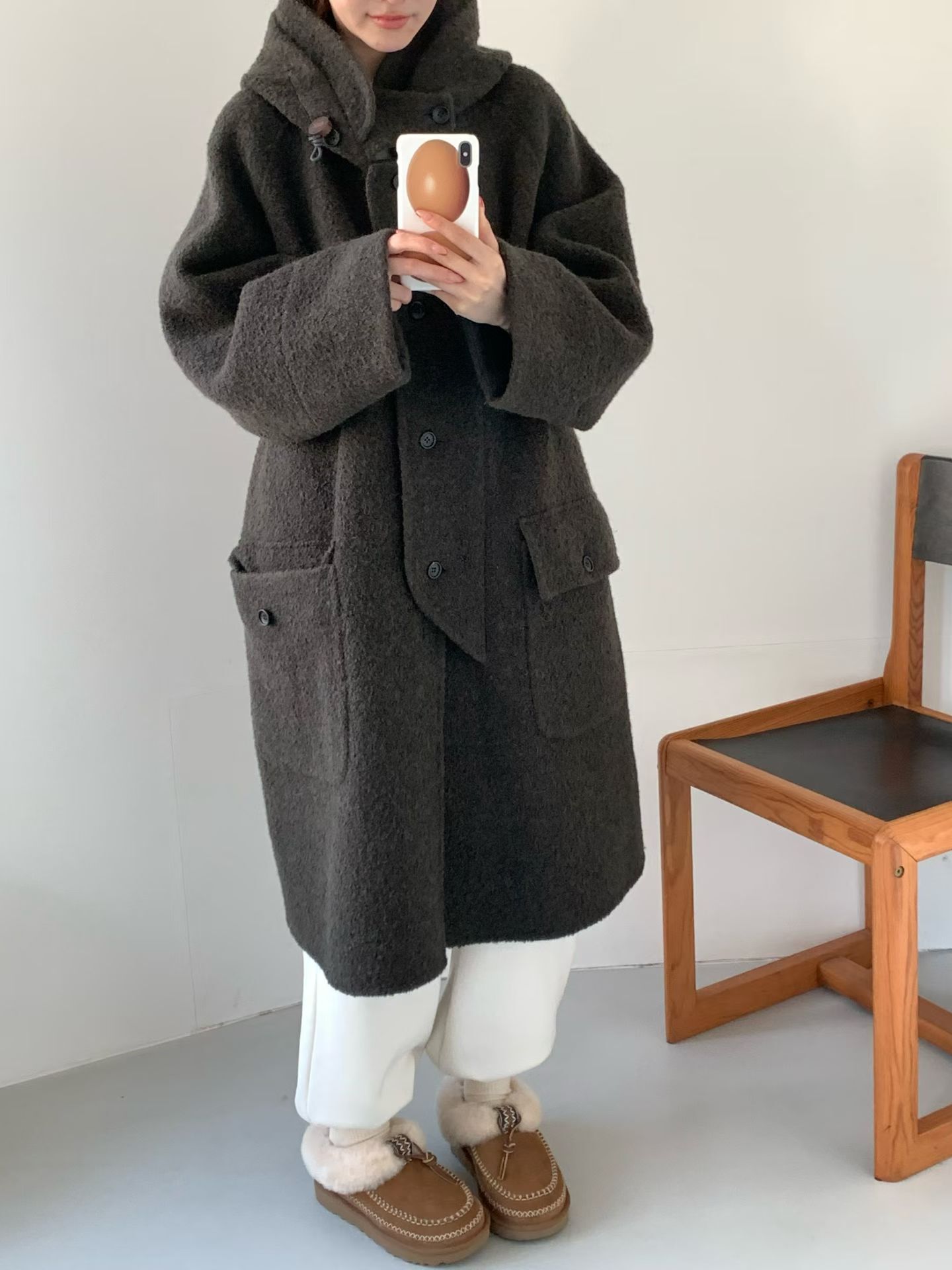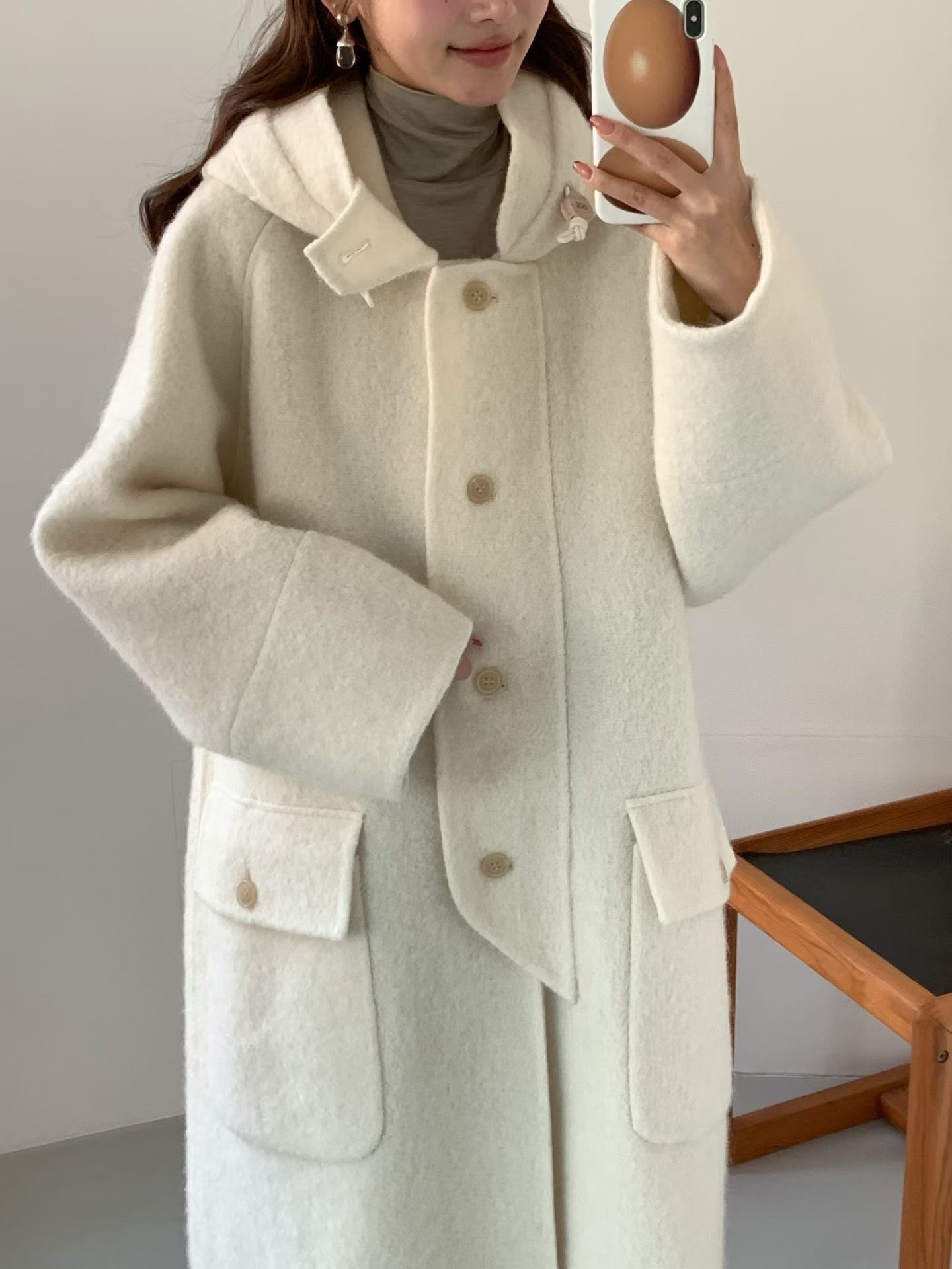 egg🥚高品質Baby Alpaca +Cashmere羊毛連帽大衣
