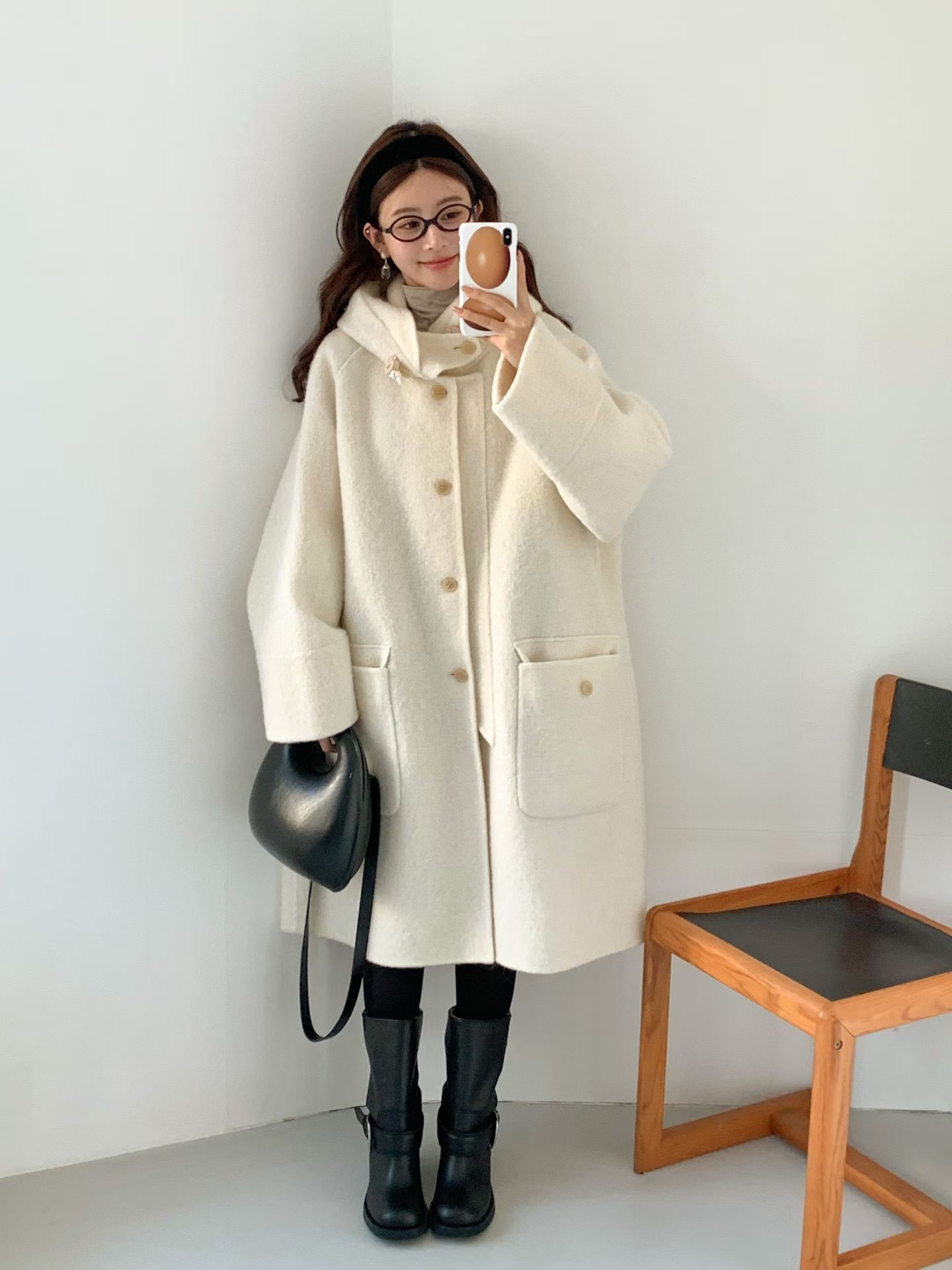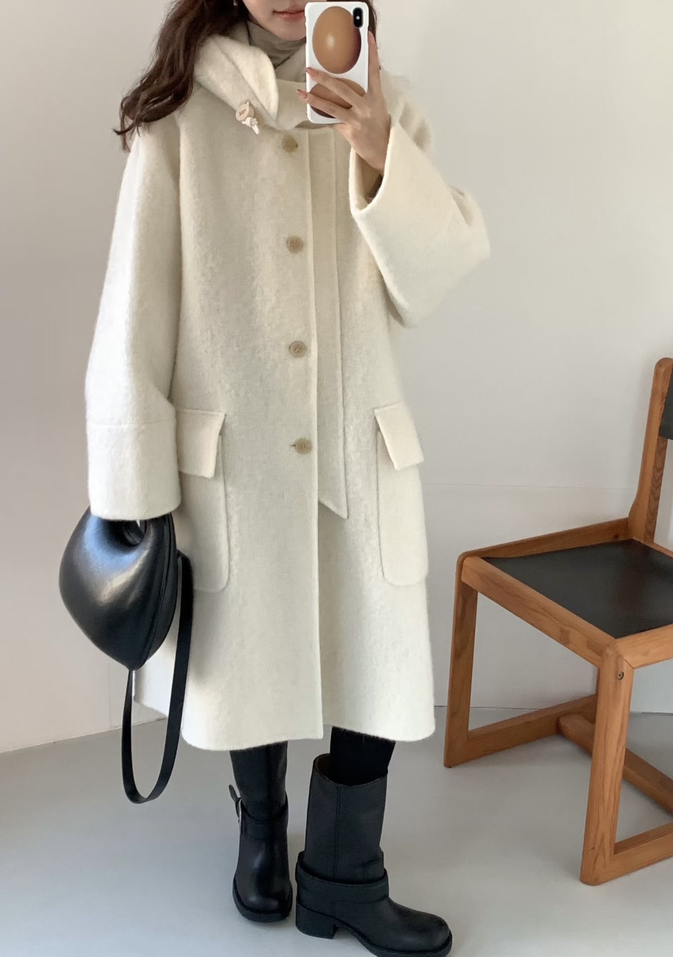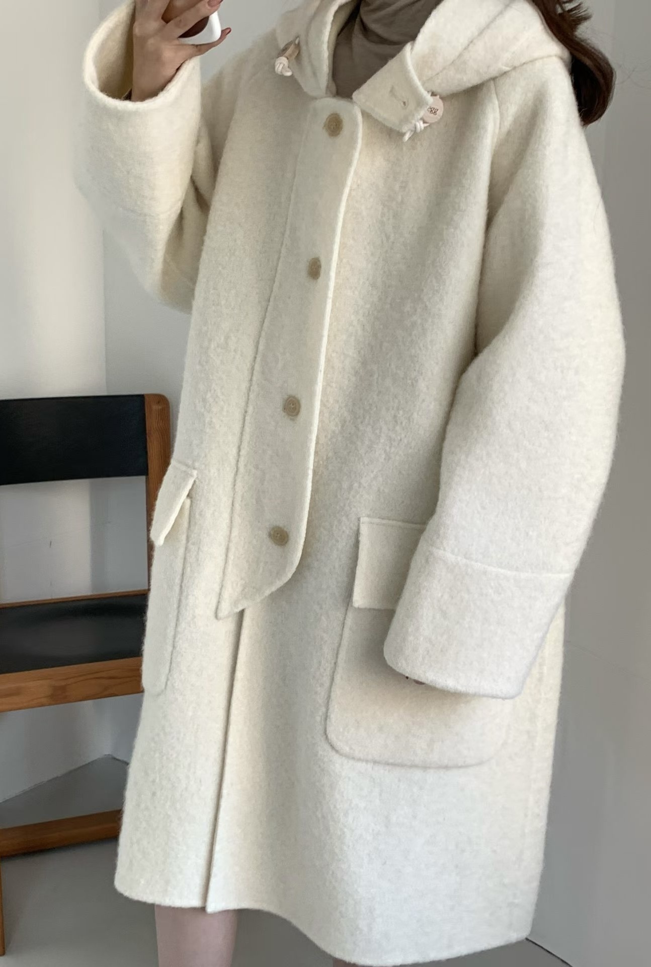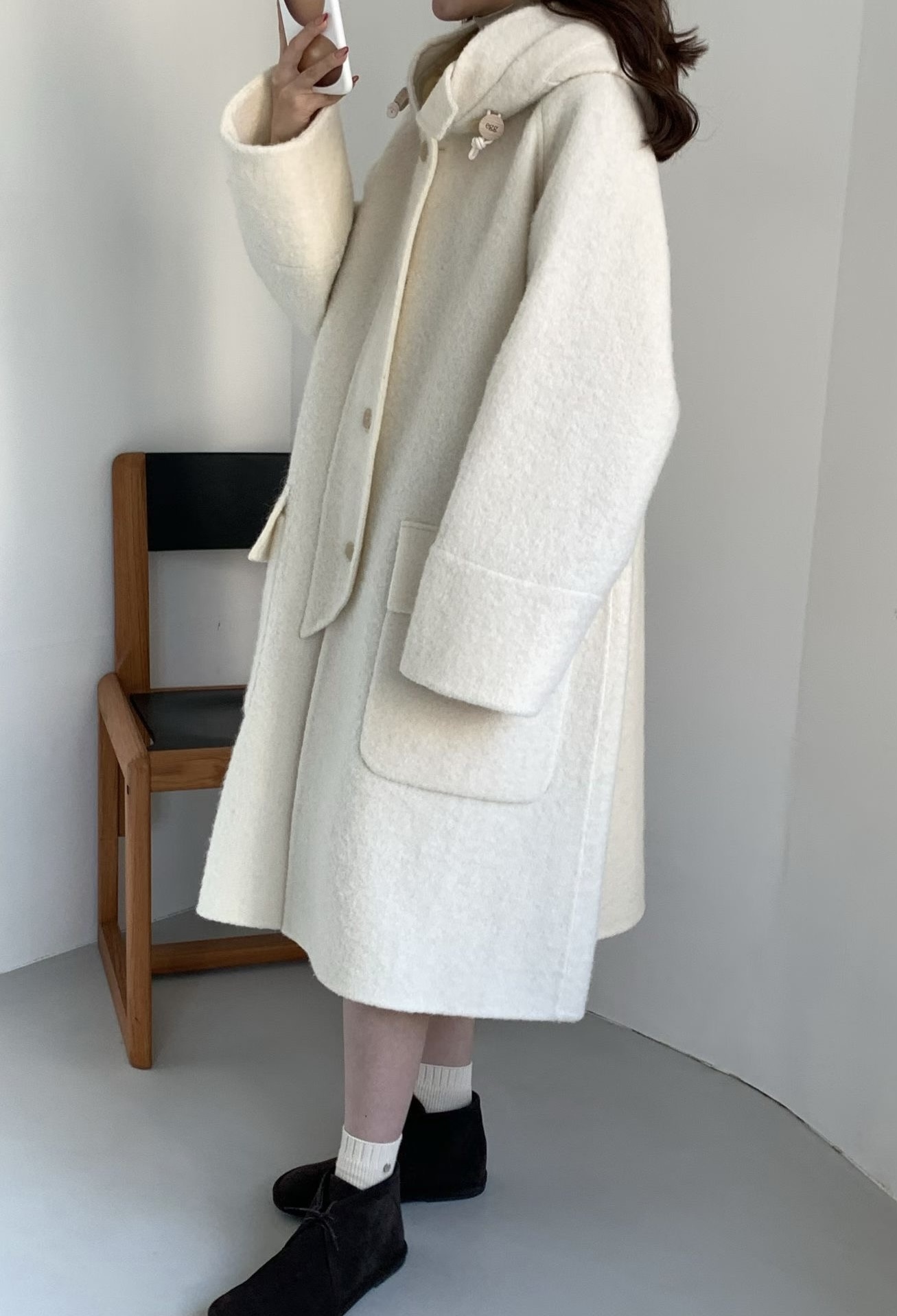 egg🥚高品質Baby Alpaca +Cashmere羊毛連帽大衣