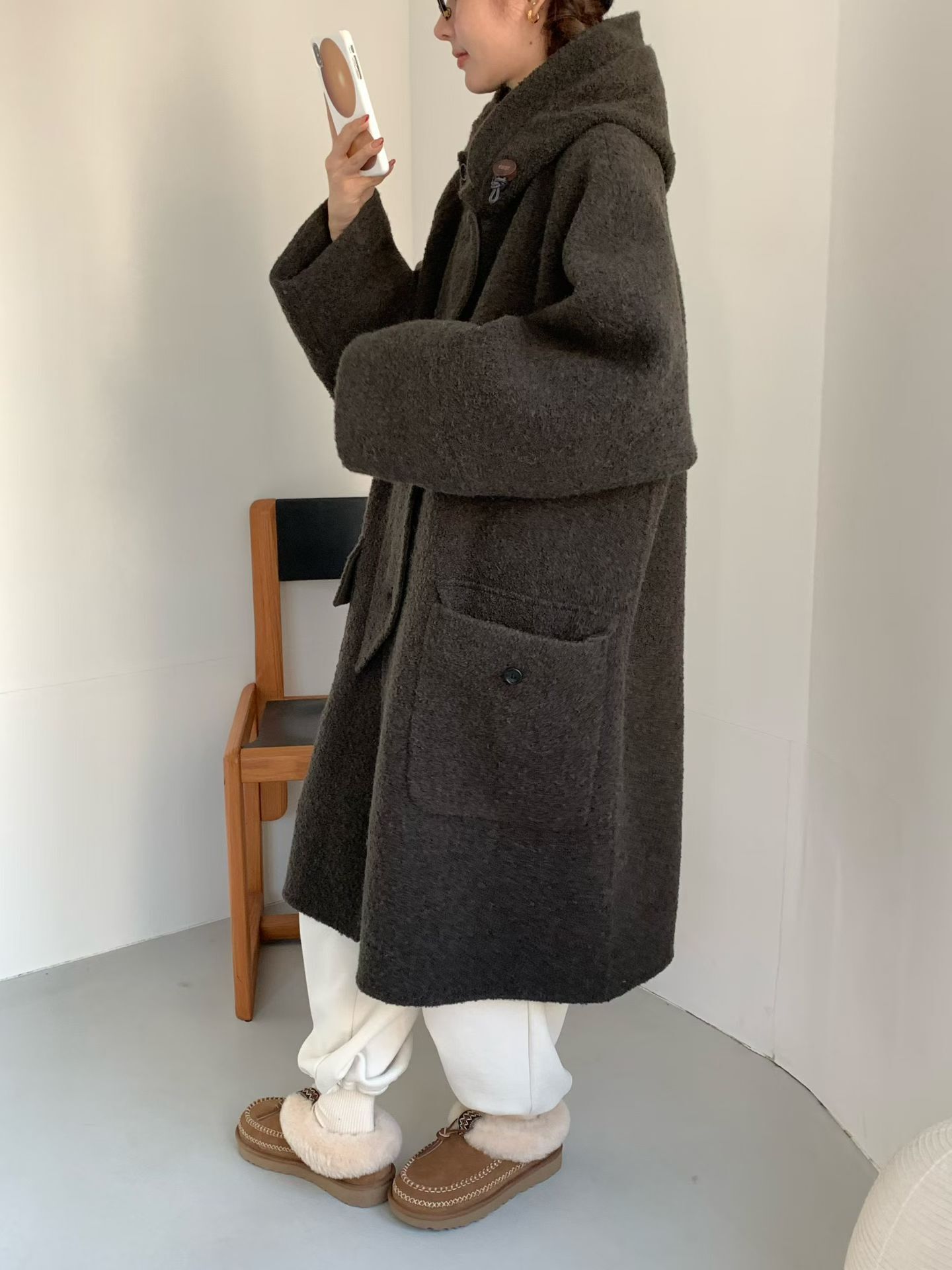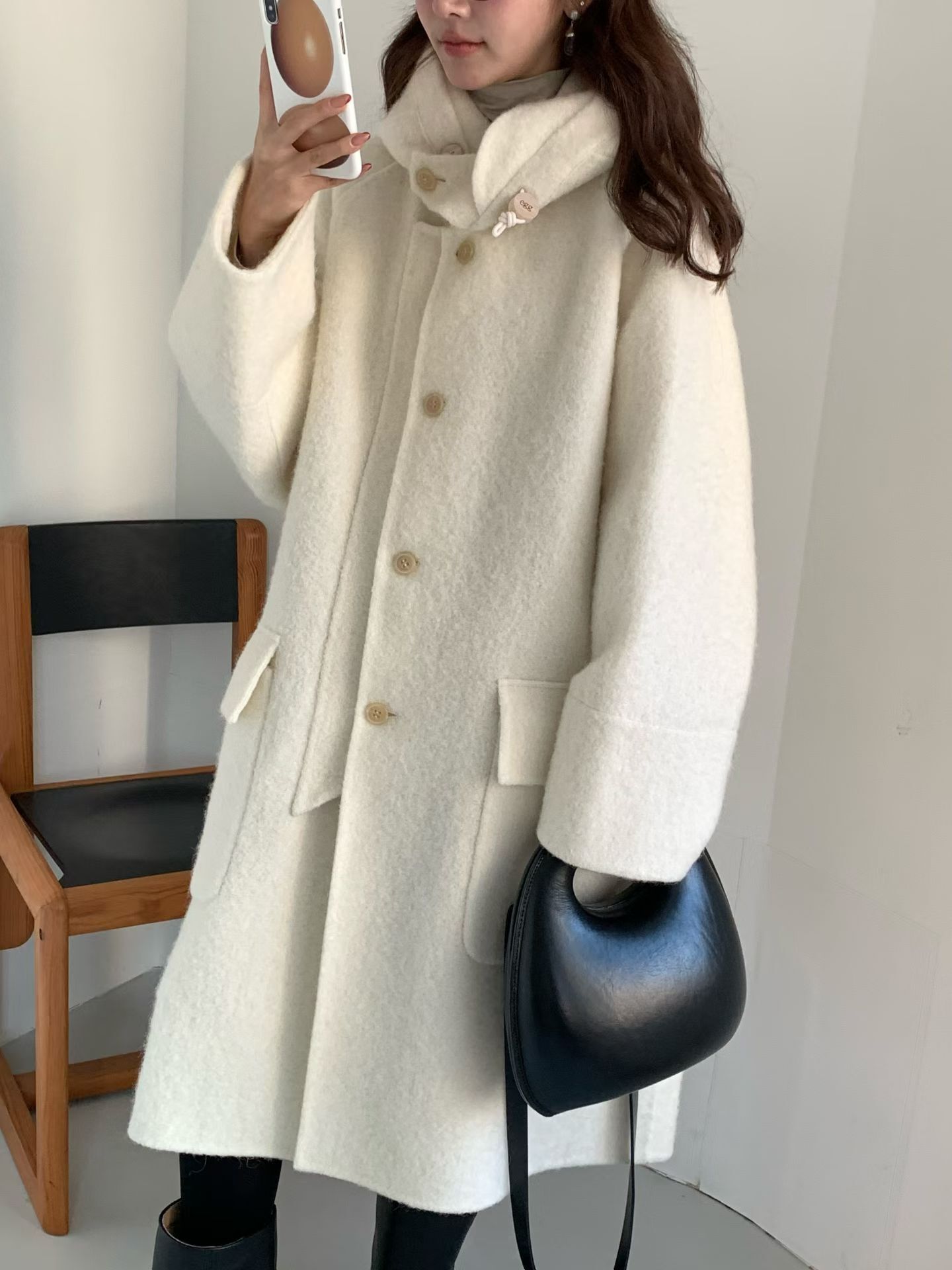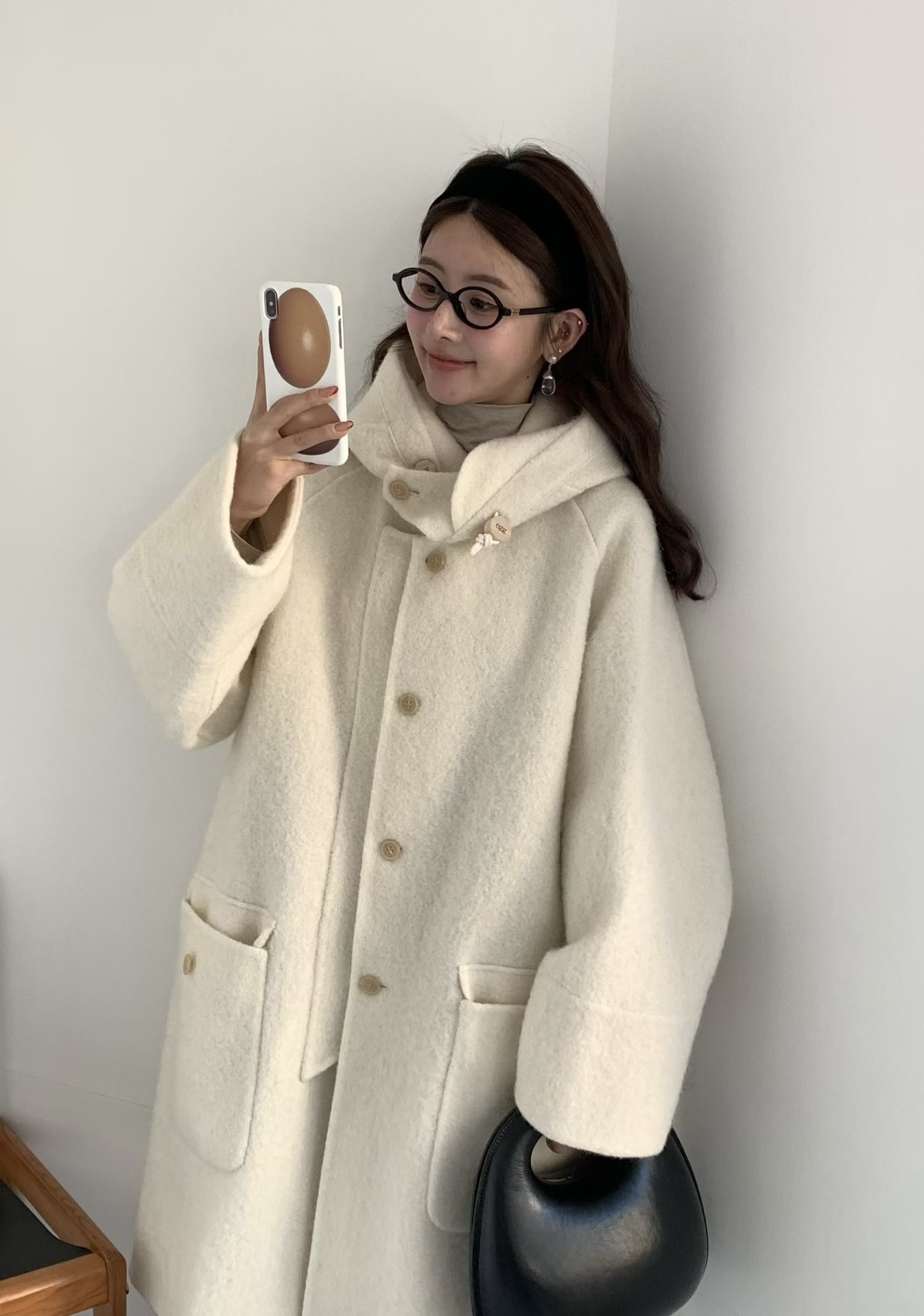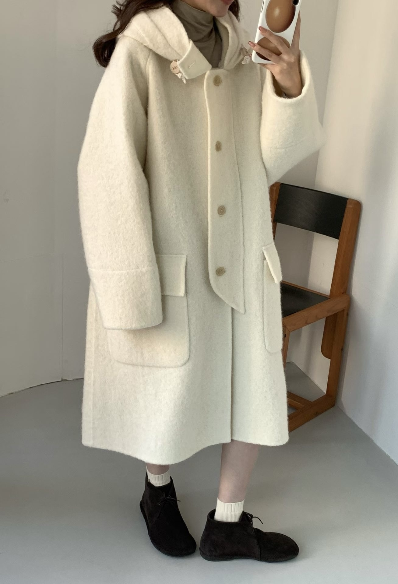 egg🥚高品質Baby Alpaca +Cashmere羊毛連帽大衣