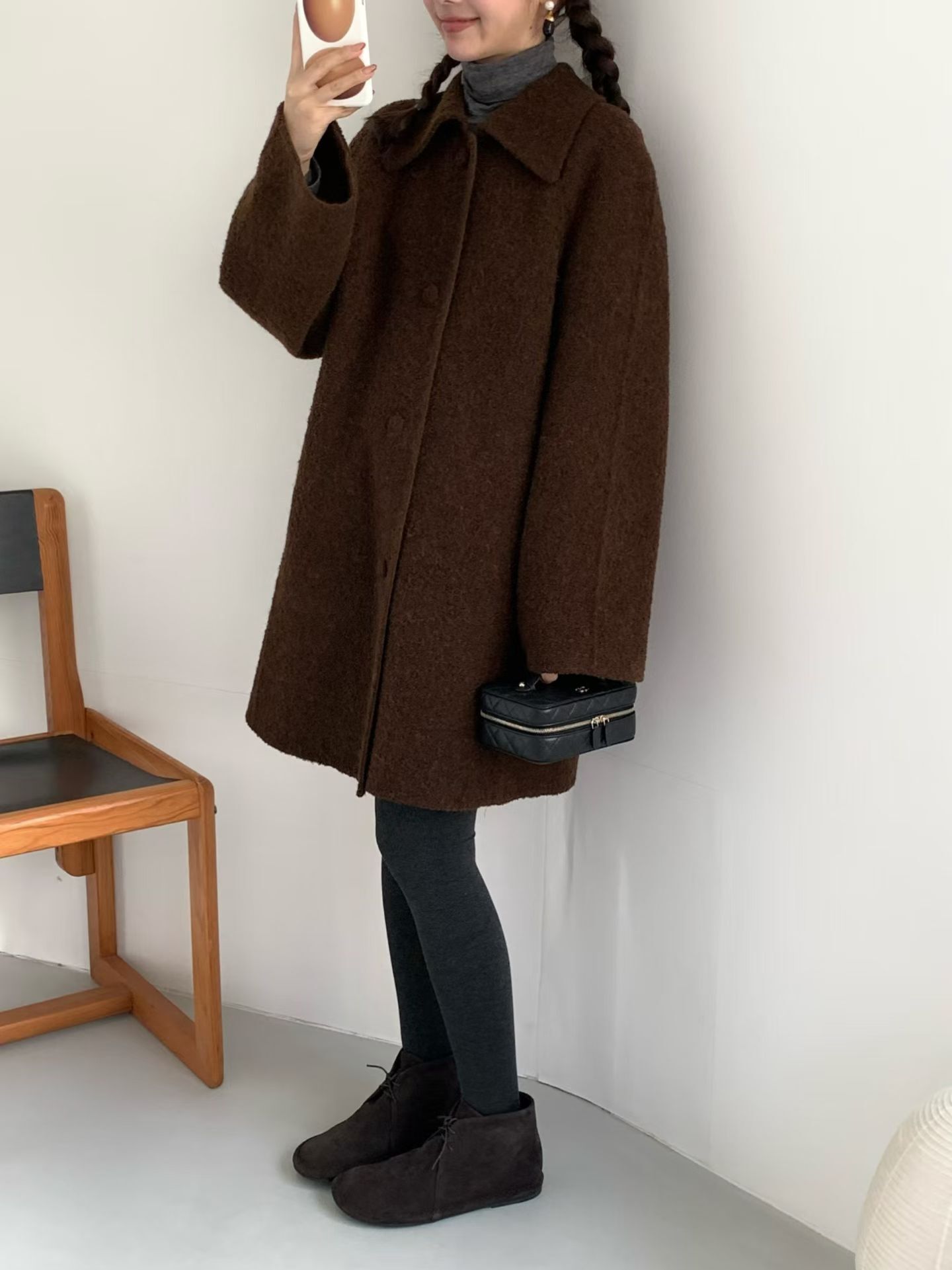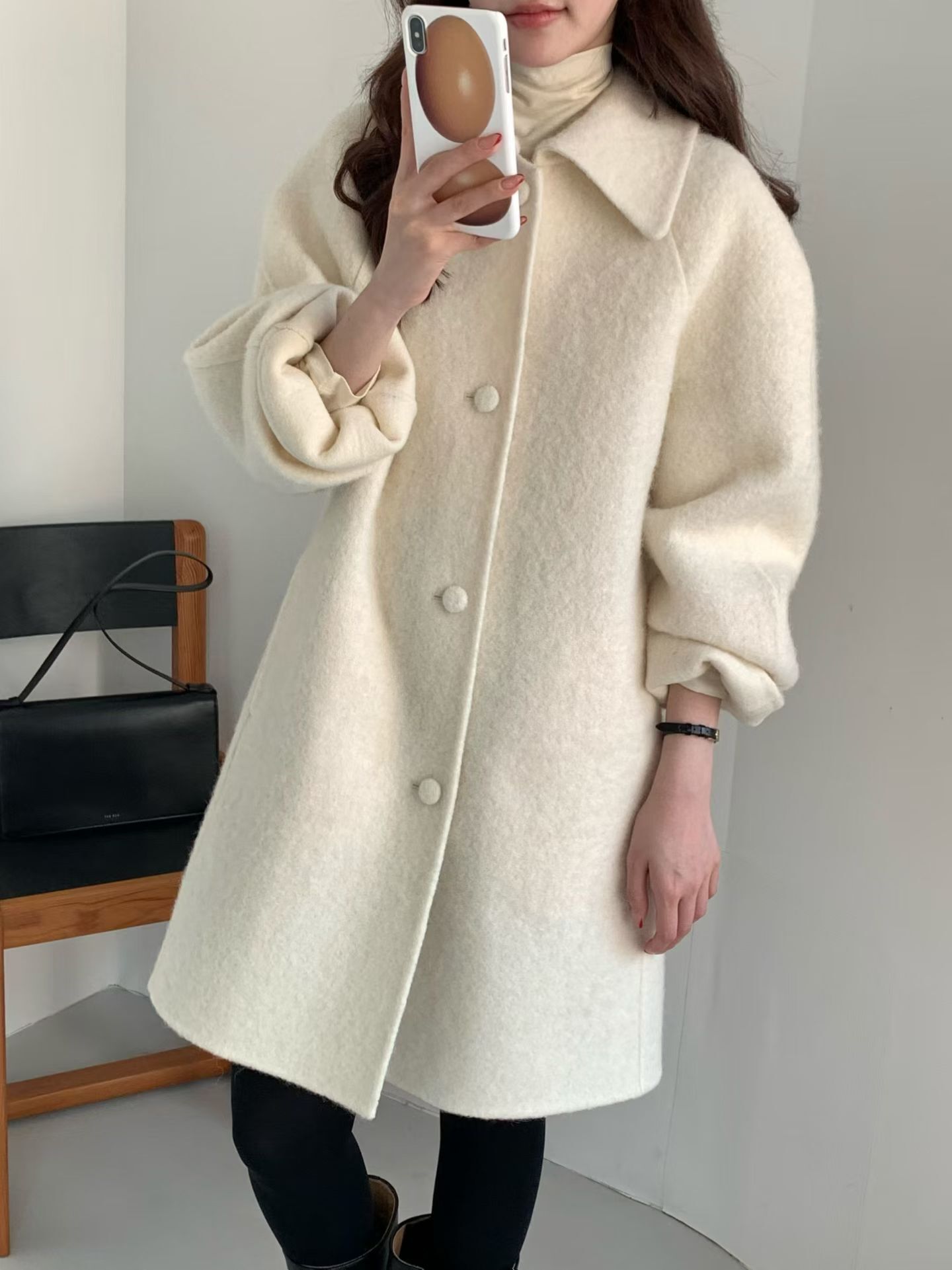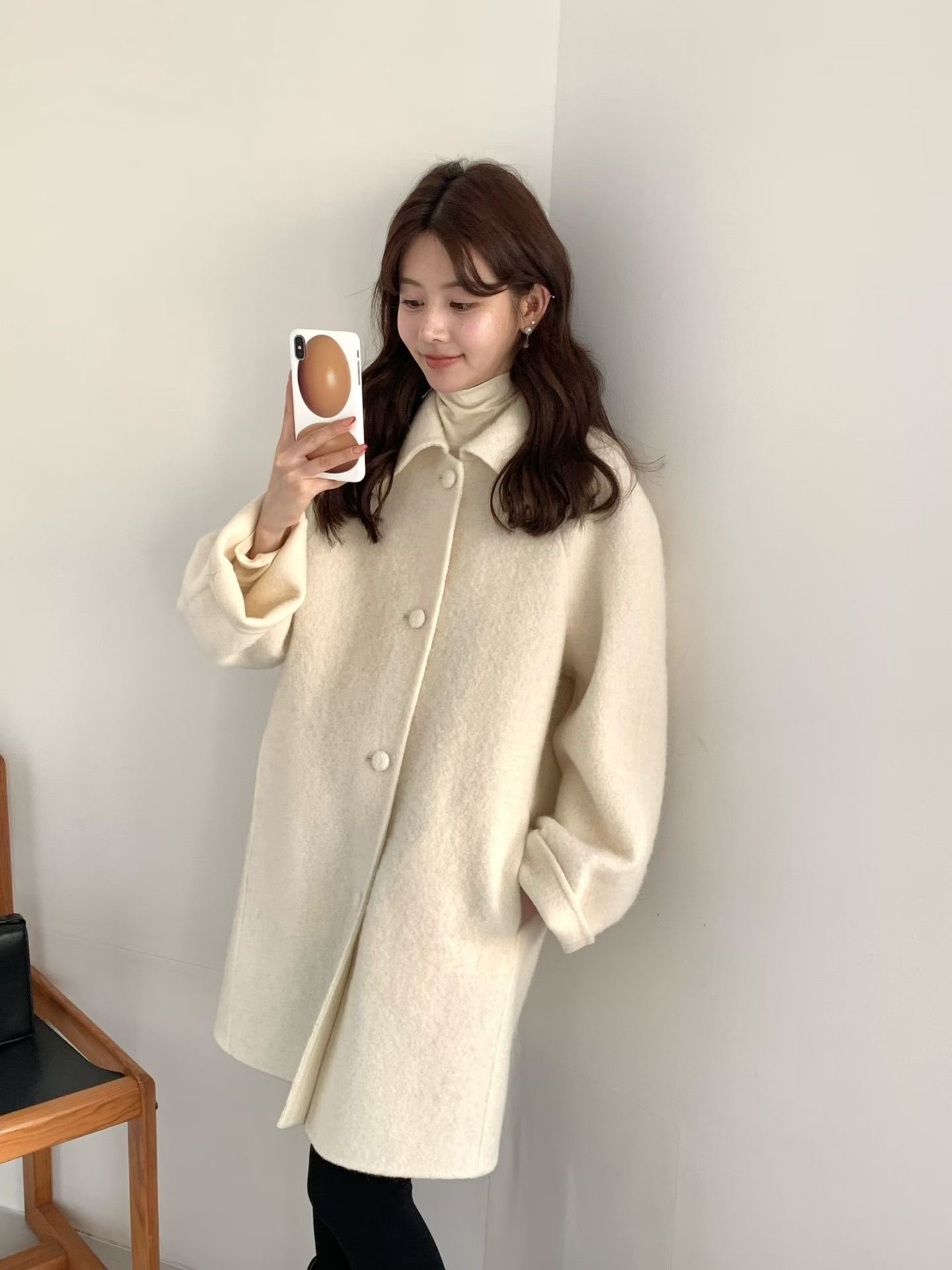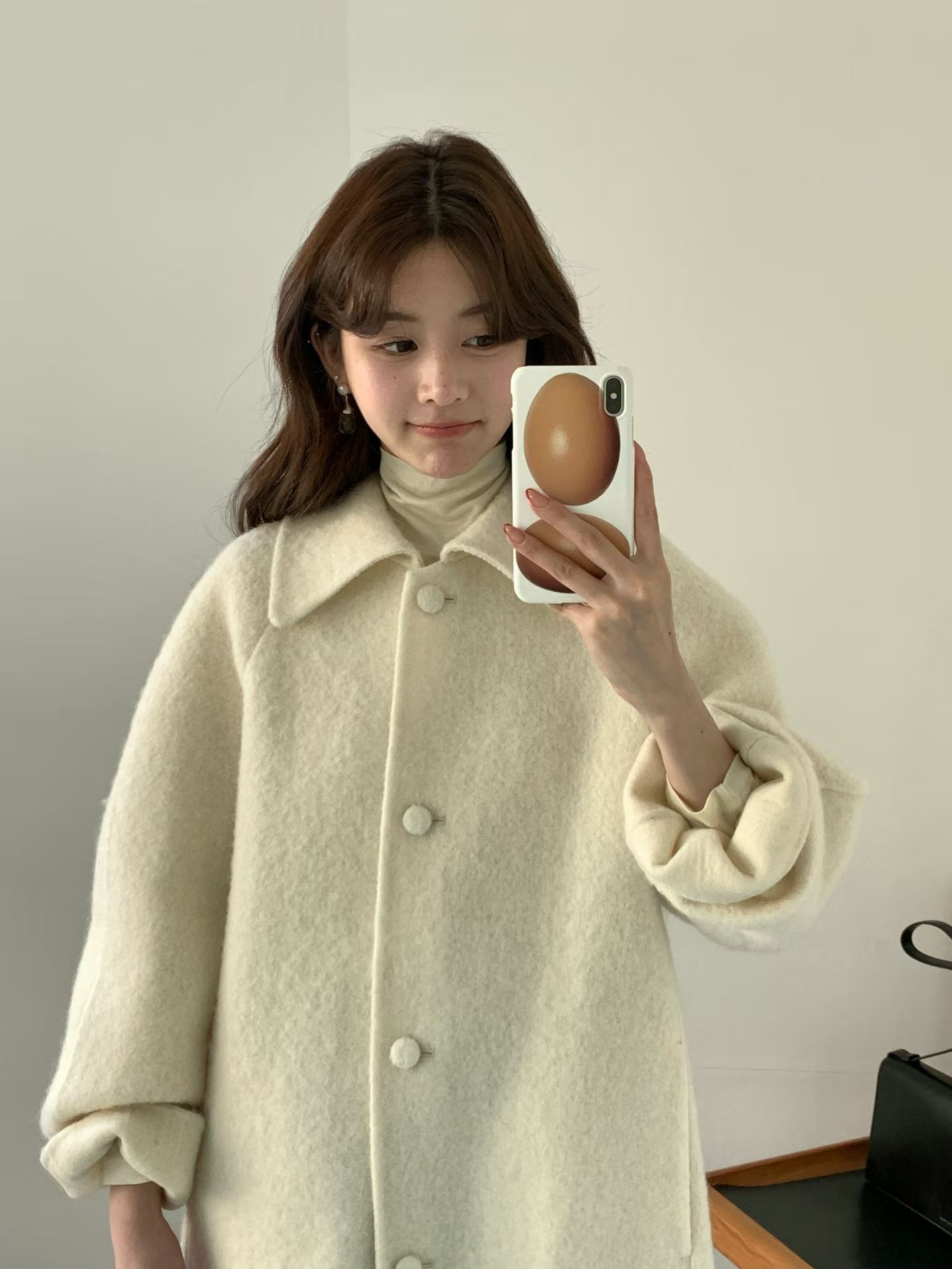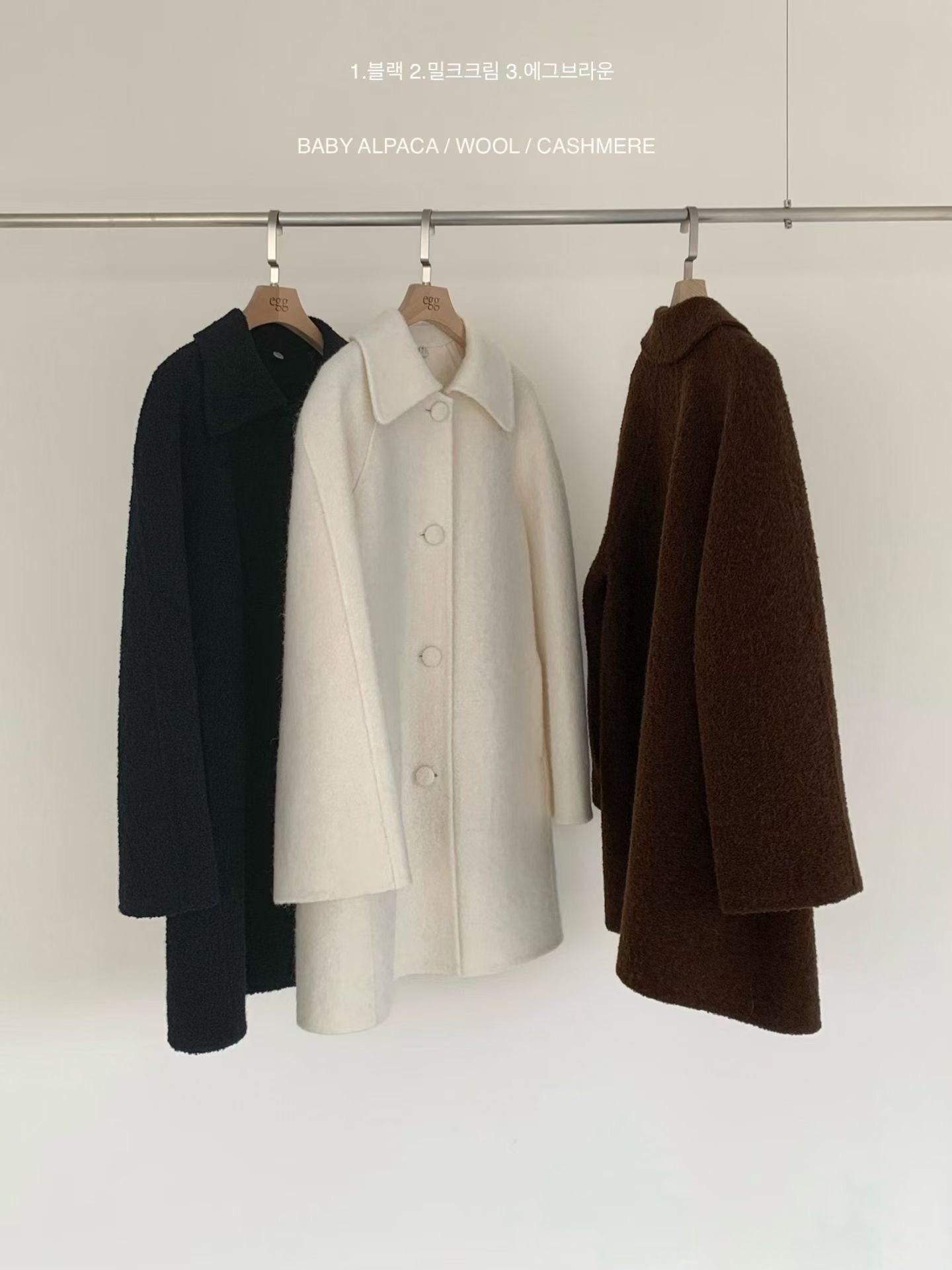egg🥚義大利Baby羊駝 Cashmere羊毛翻領開扣中長版大衣