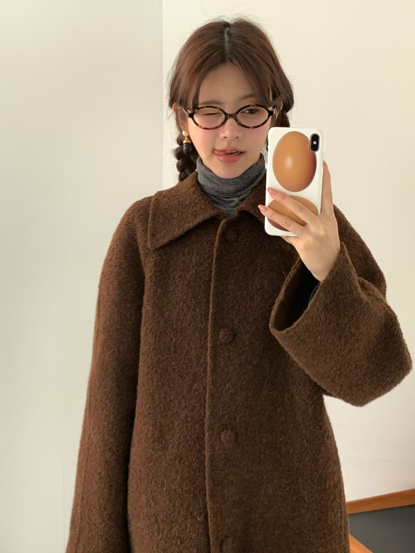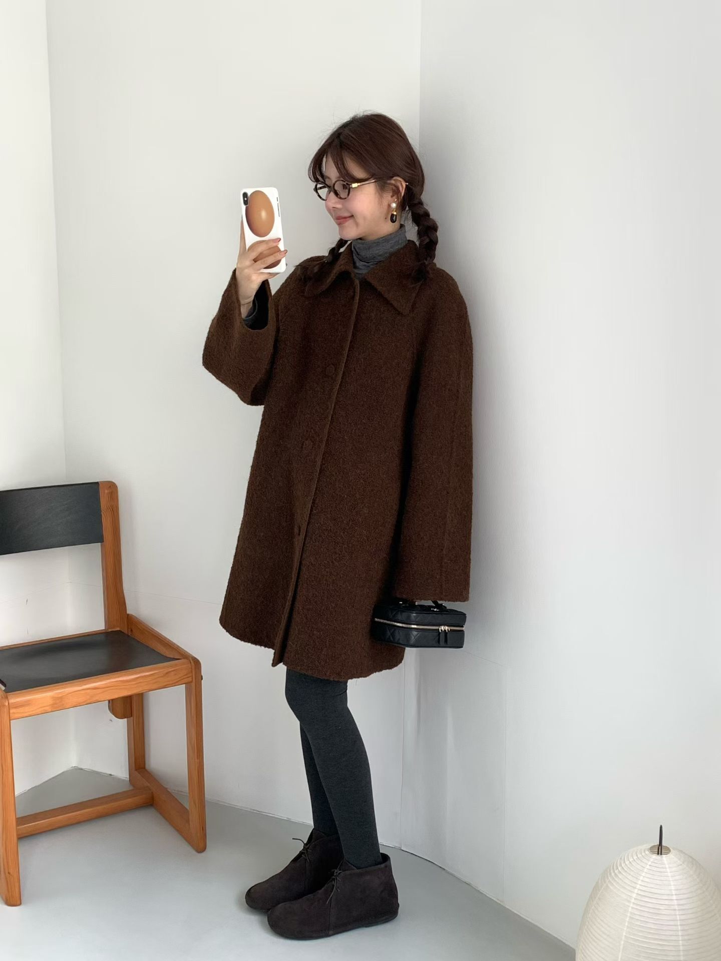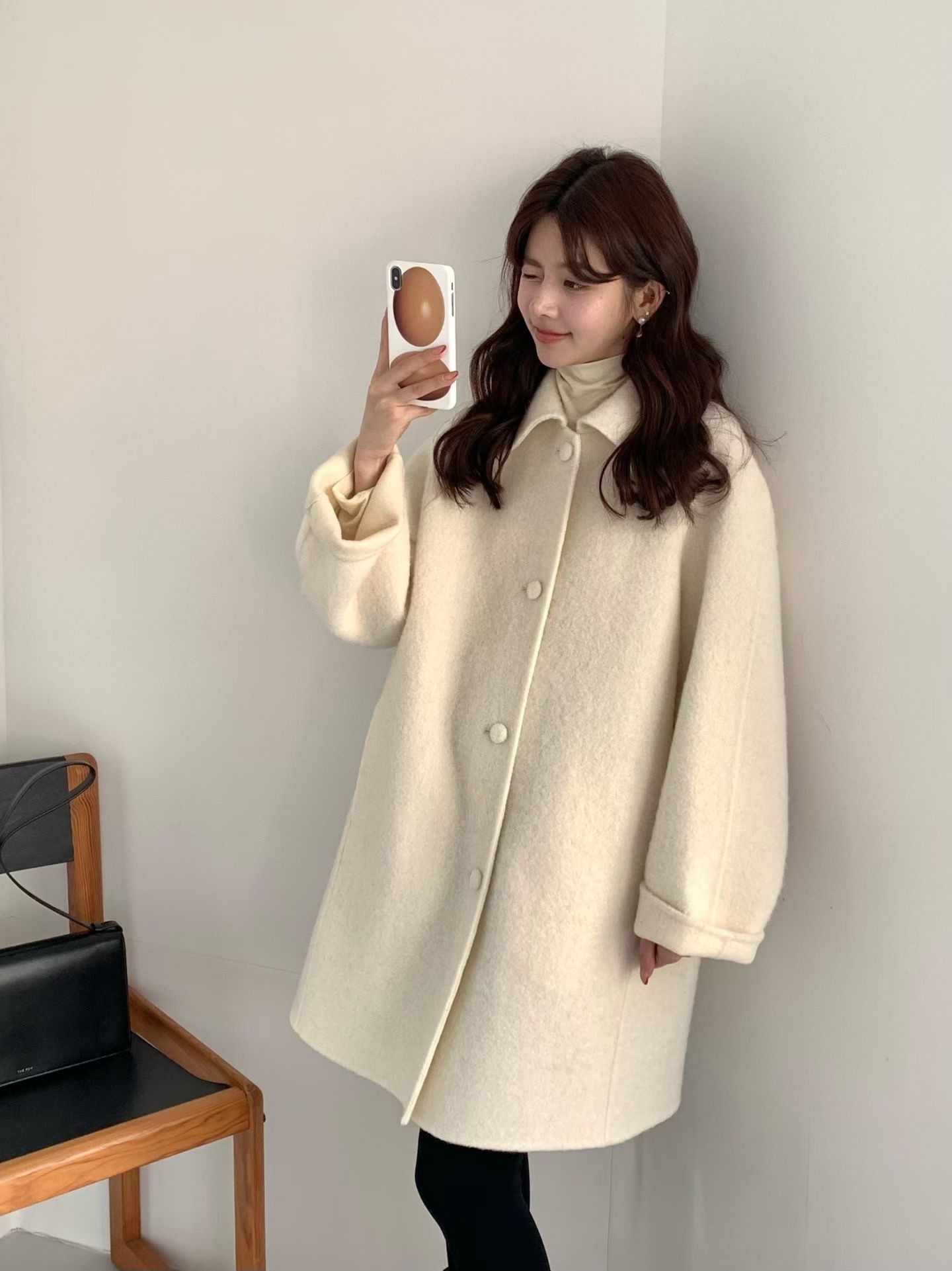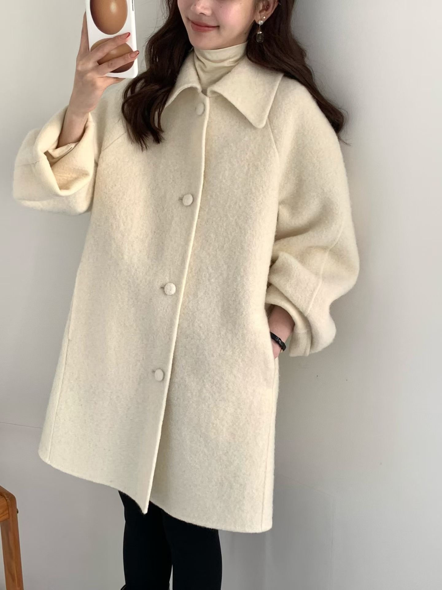egg🥚義大利Baby羊駝 Cashmere羊毛翻領開扣中長版大衣
