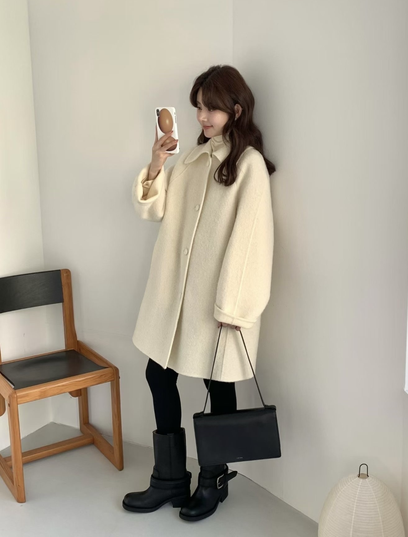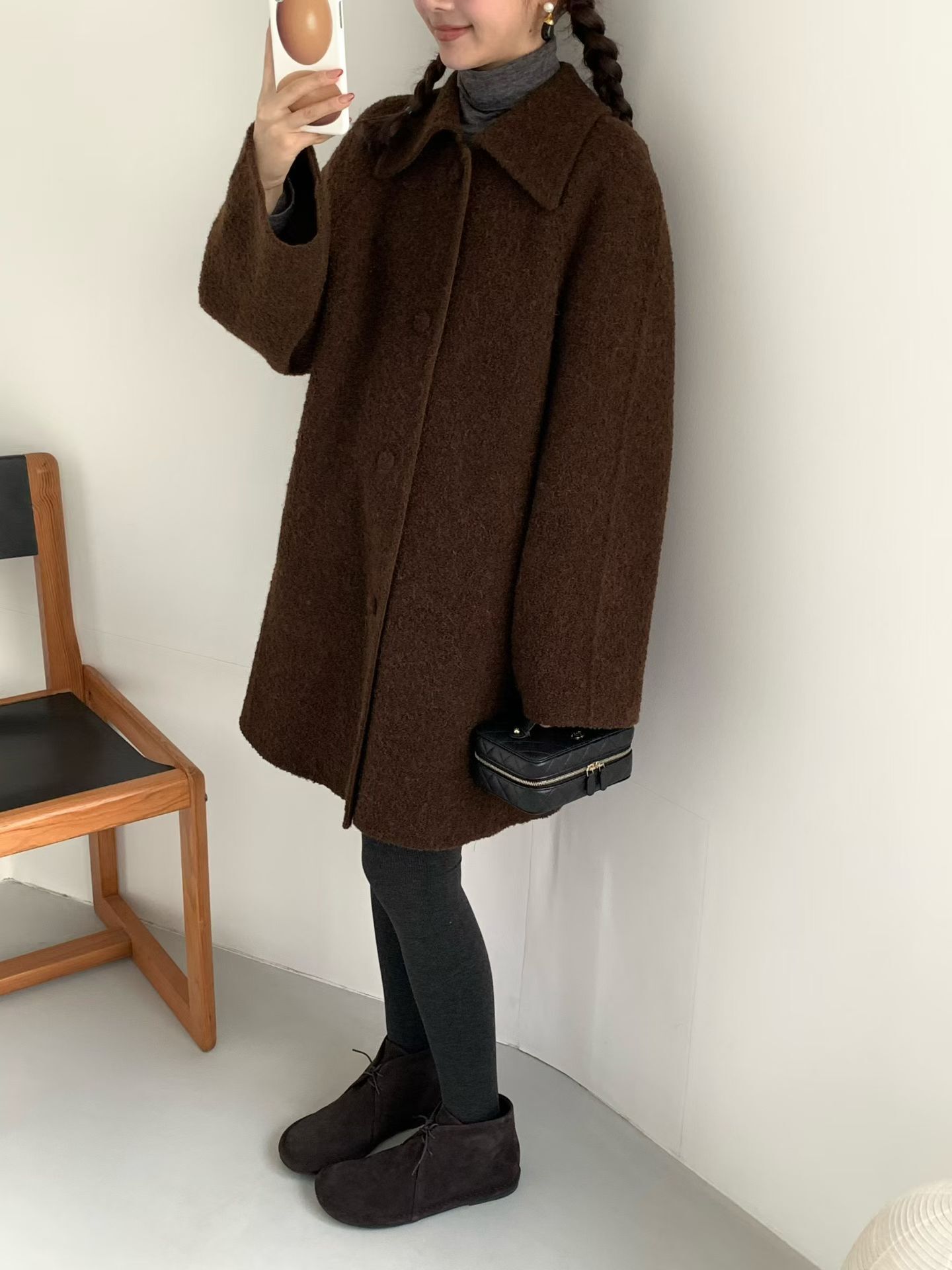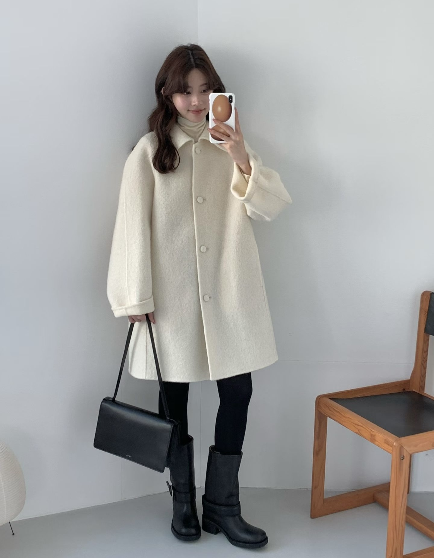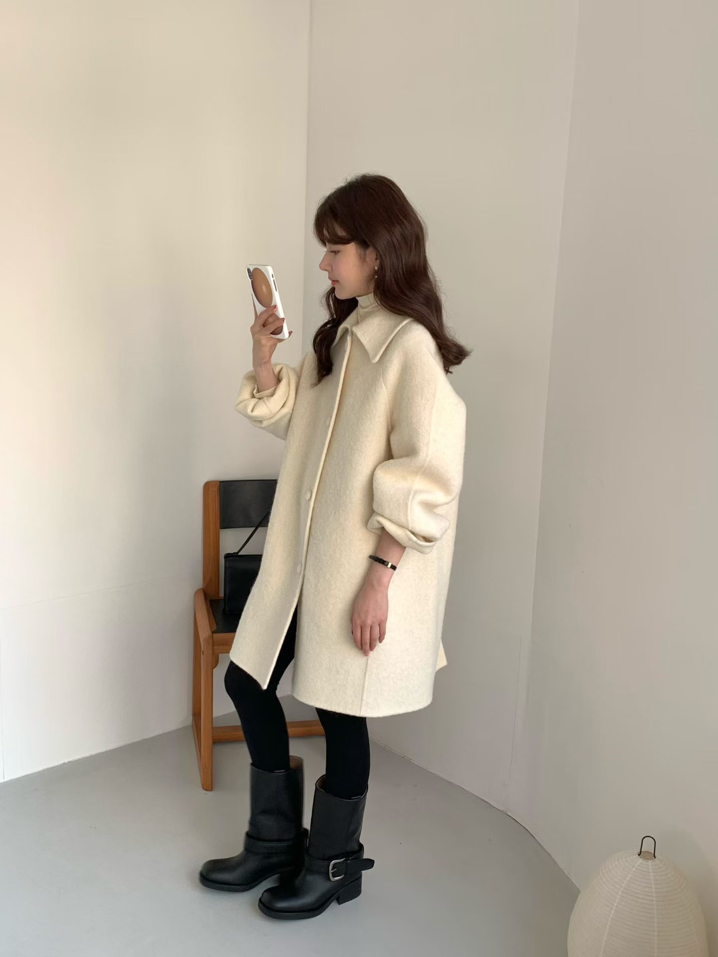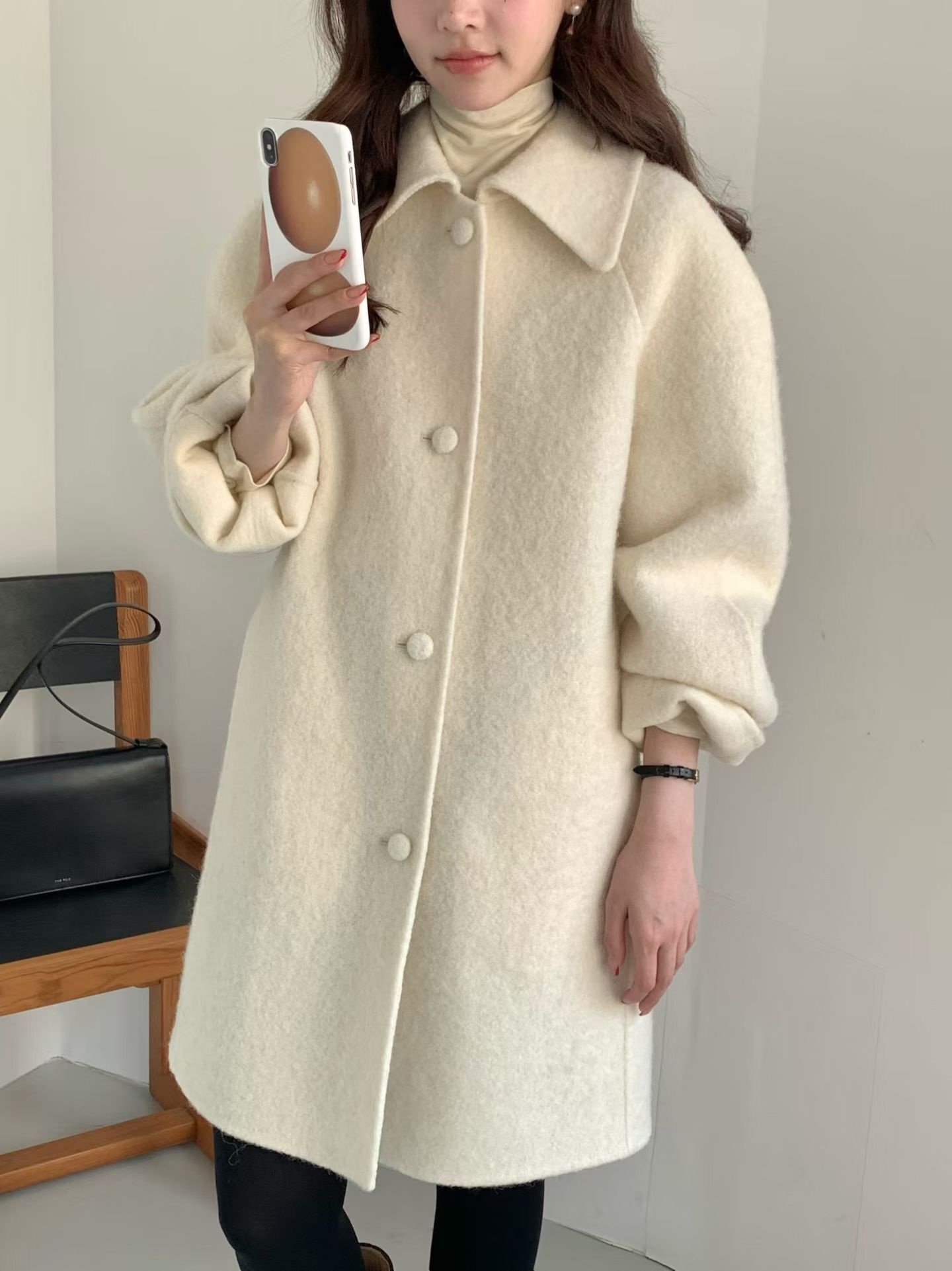 egg🥚義大利Baby羊駝 Cashmere羊毛翻領開扣中長版大衣