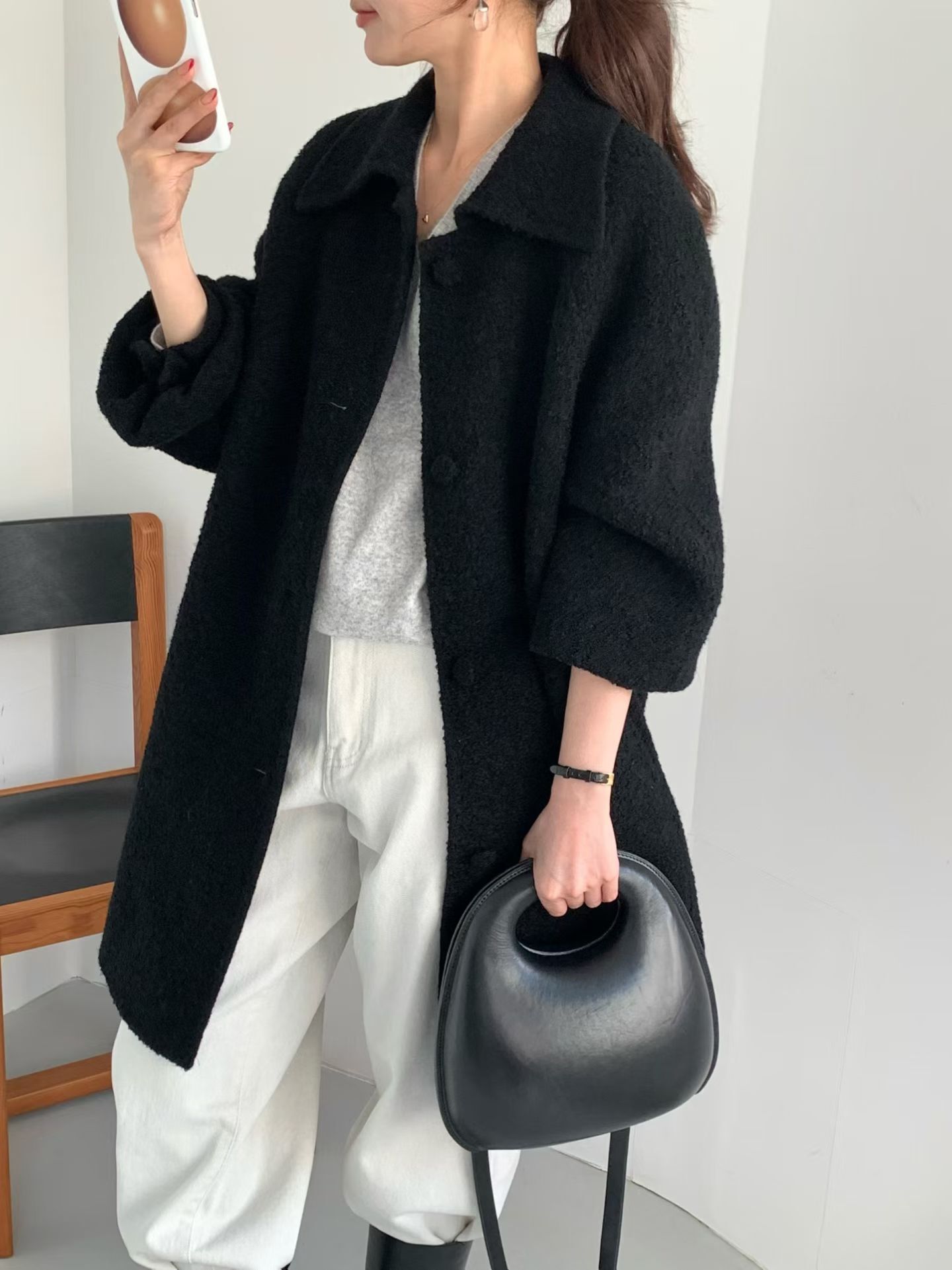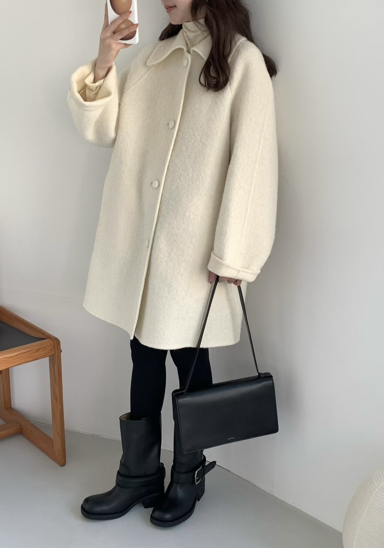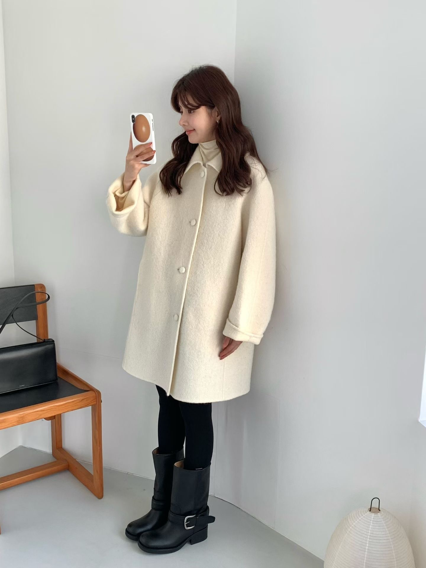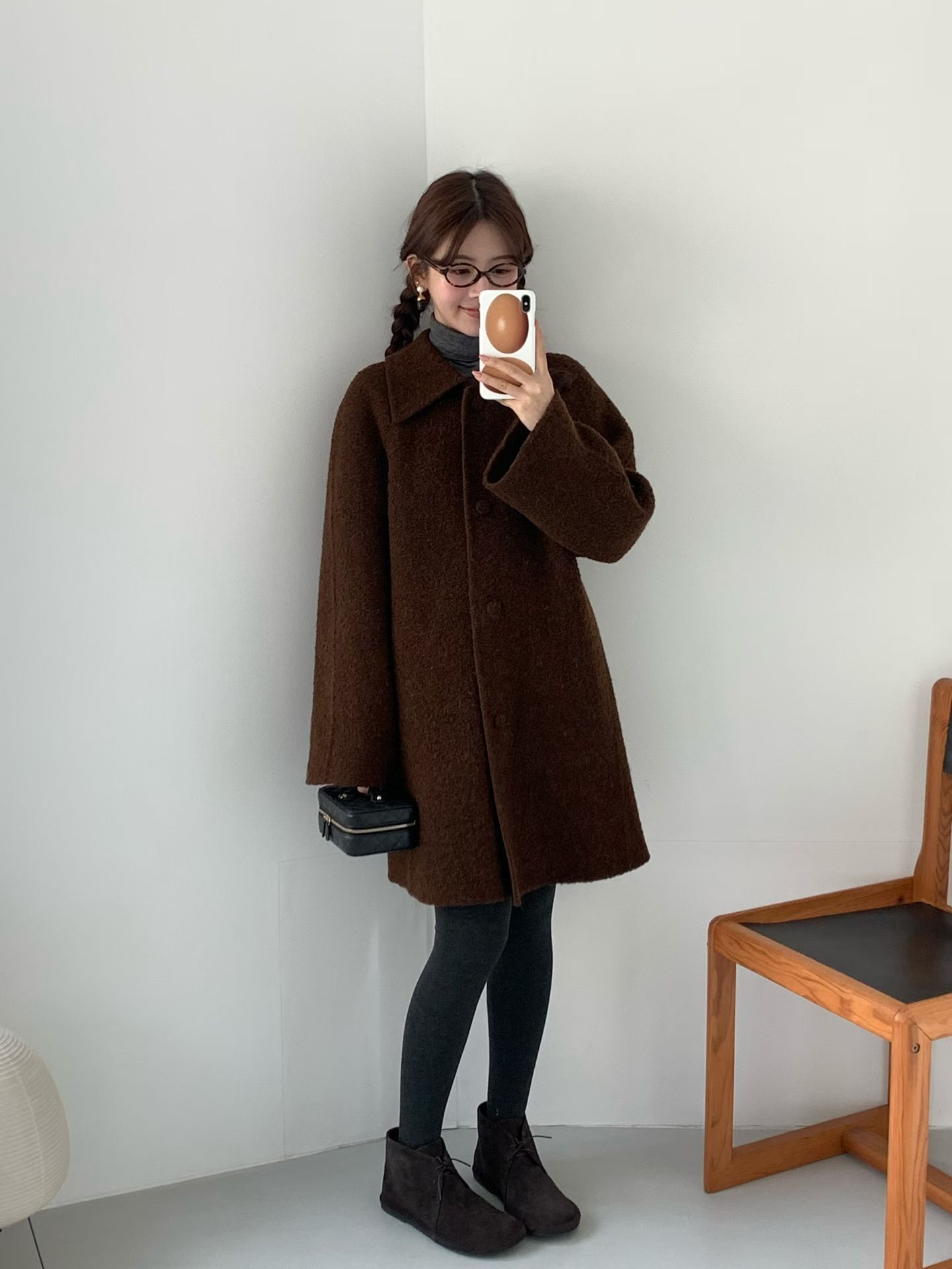 egg🥚義大利Baby羊駝 Cashmere羊毛翻領開扣中長版大衣