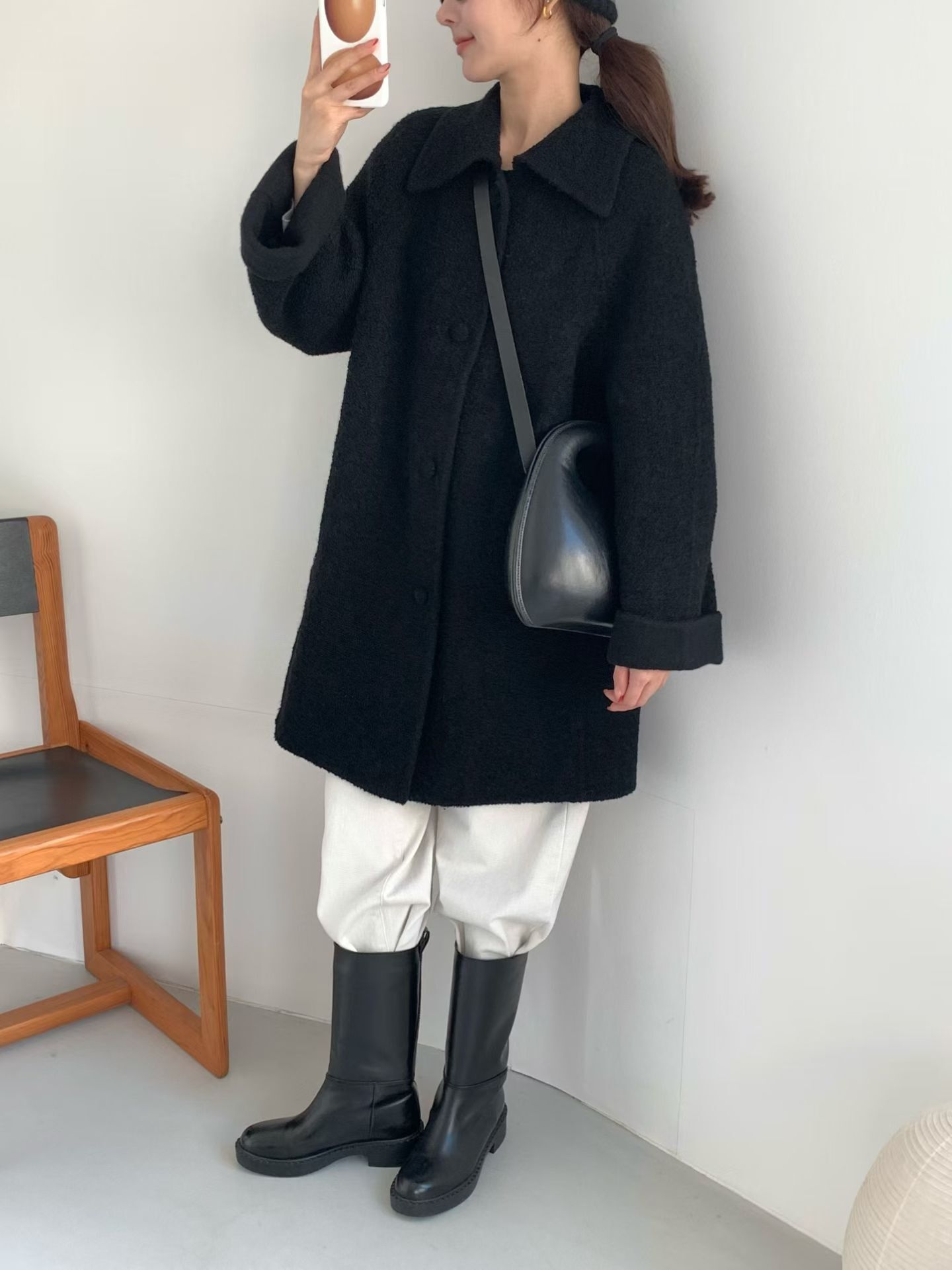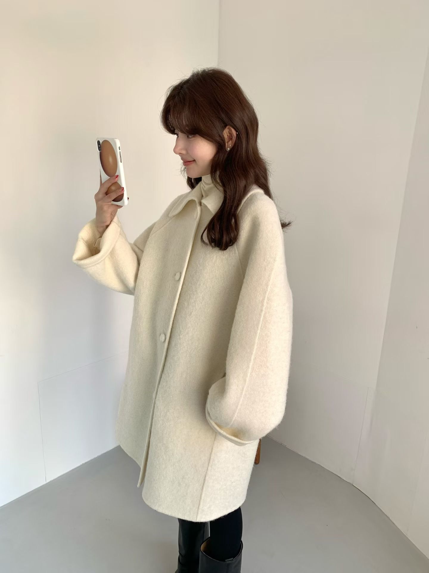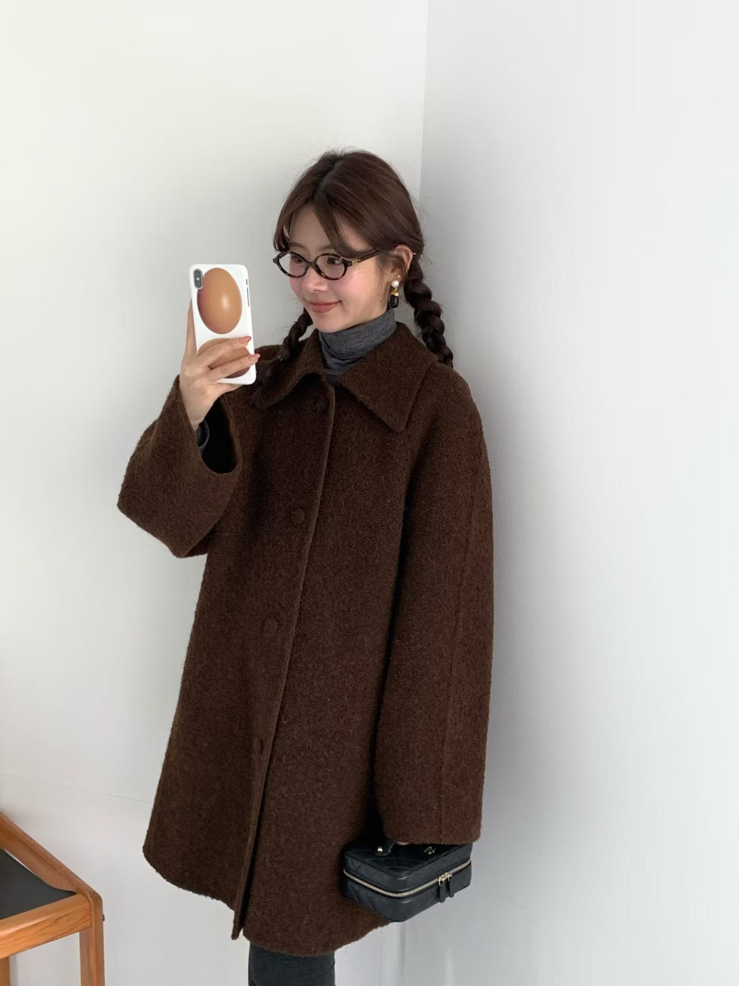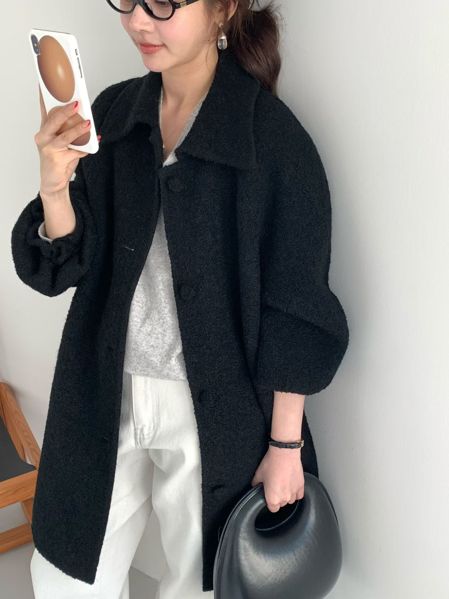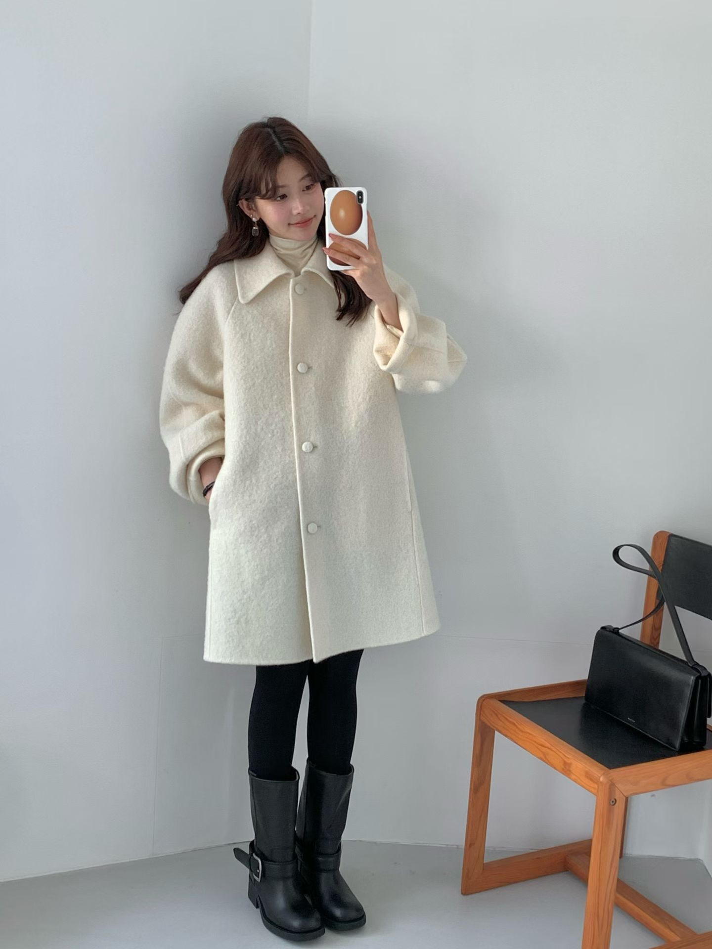 egg🥚義大利Baby羊駝 Cashmere羊毛翻領開扣中長版大衣